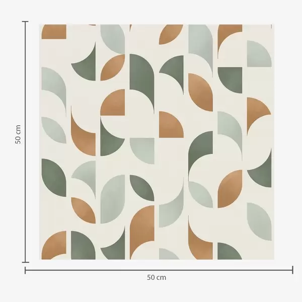 Tapet Abstrakte halvsirkler og blader i grønt og terrakotta Nr. a00985