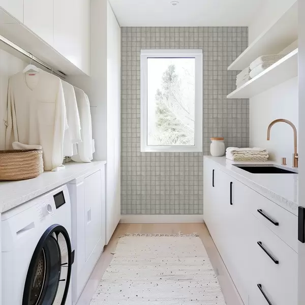Tapet Imitasjon av firkantede fliser i en myk grågrønn palett Nr. a00988