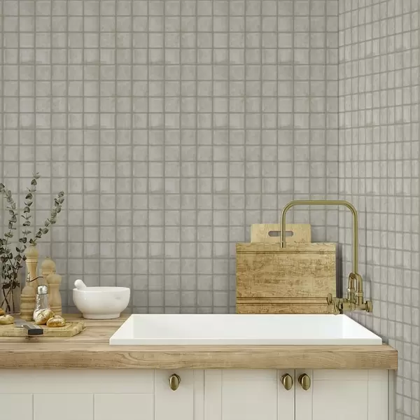 Tapet Imitasjon av firkantede fliser i en myk grågrønn palett Nr. a00988