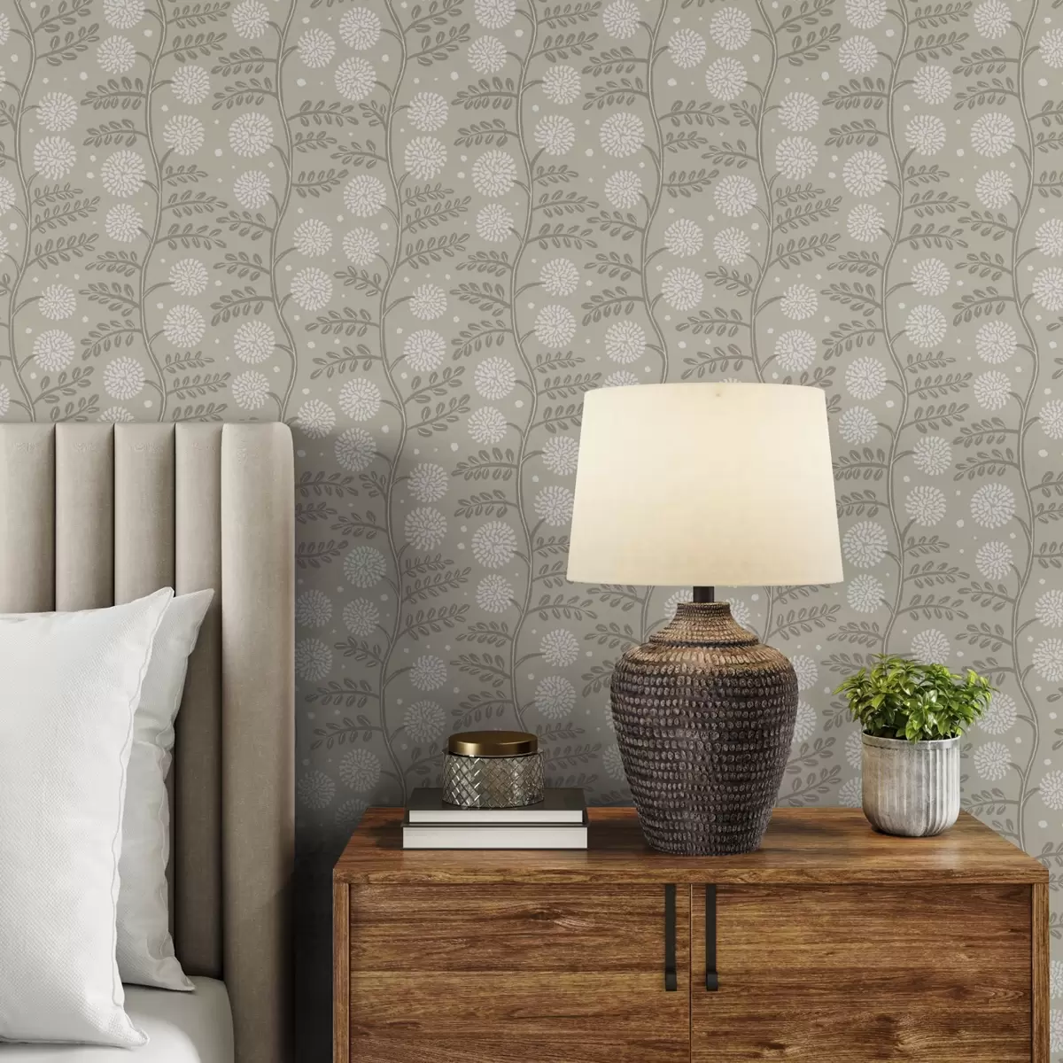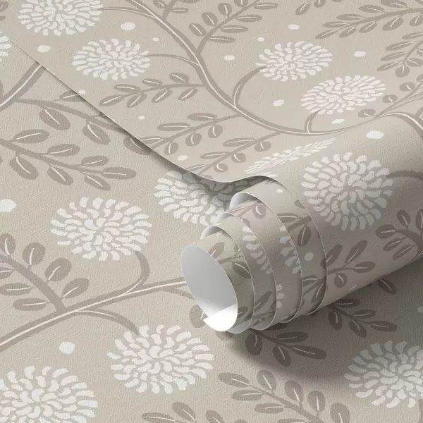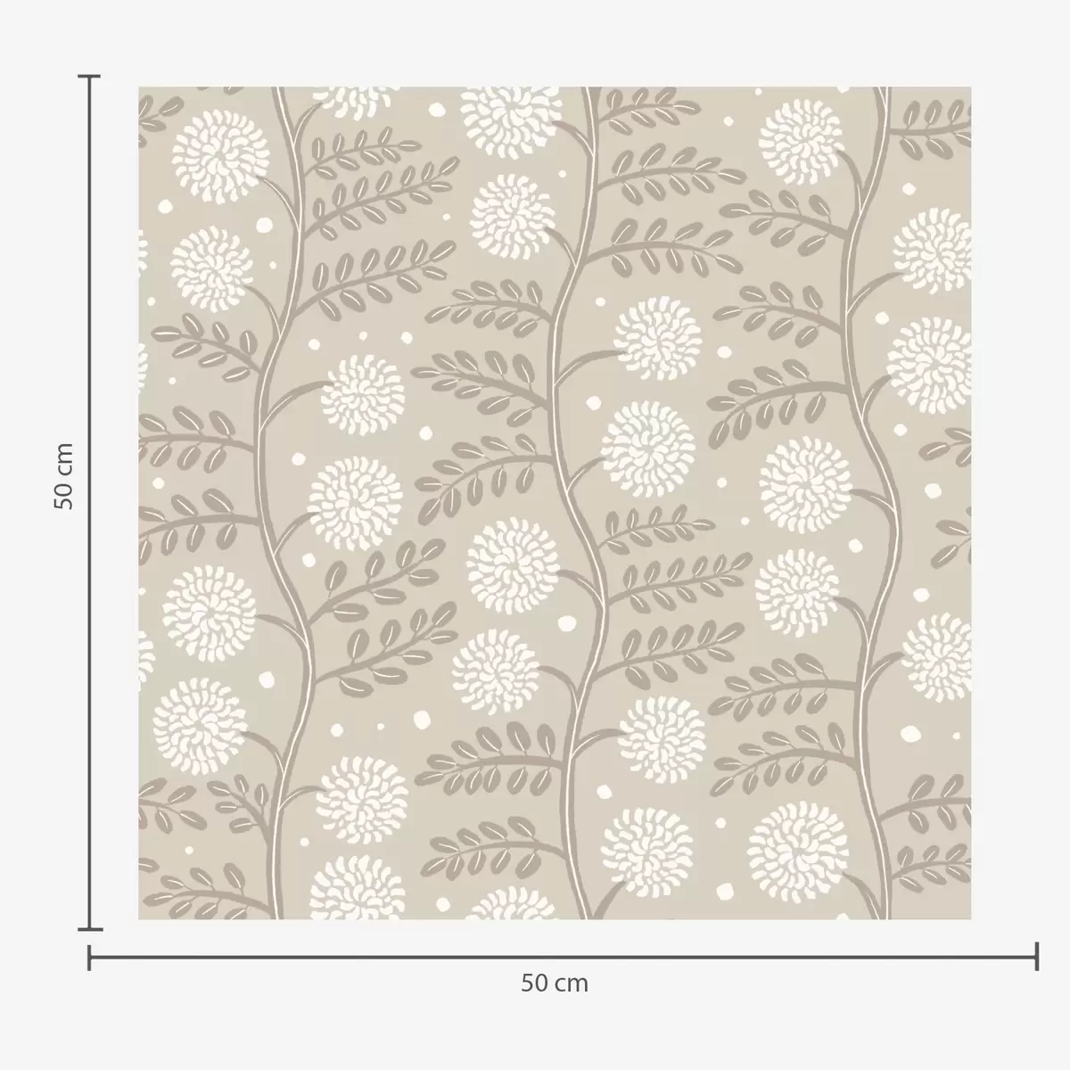 Tapet Beige stilker med hvite, fluffy blomster og myke prikker Nr. a00997