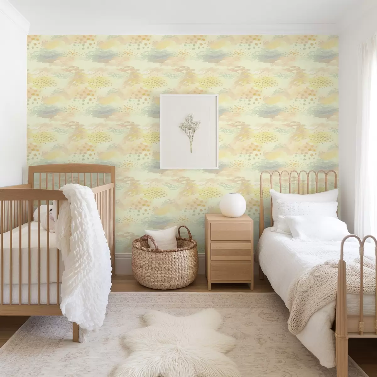 Tapet Pastellfargede penselstrøk i en varm, kremgul palett Nr. a00999v1