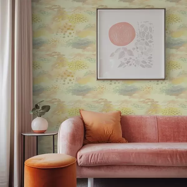 Tapet Pastellfargede penselstrøk i en varm, kremgul palett Nr. a00999v1