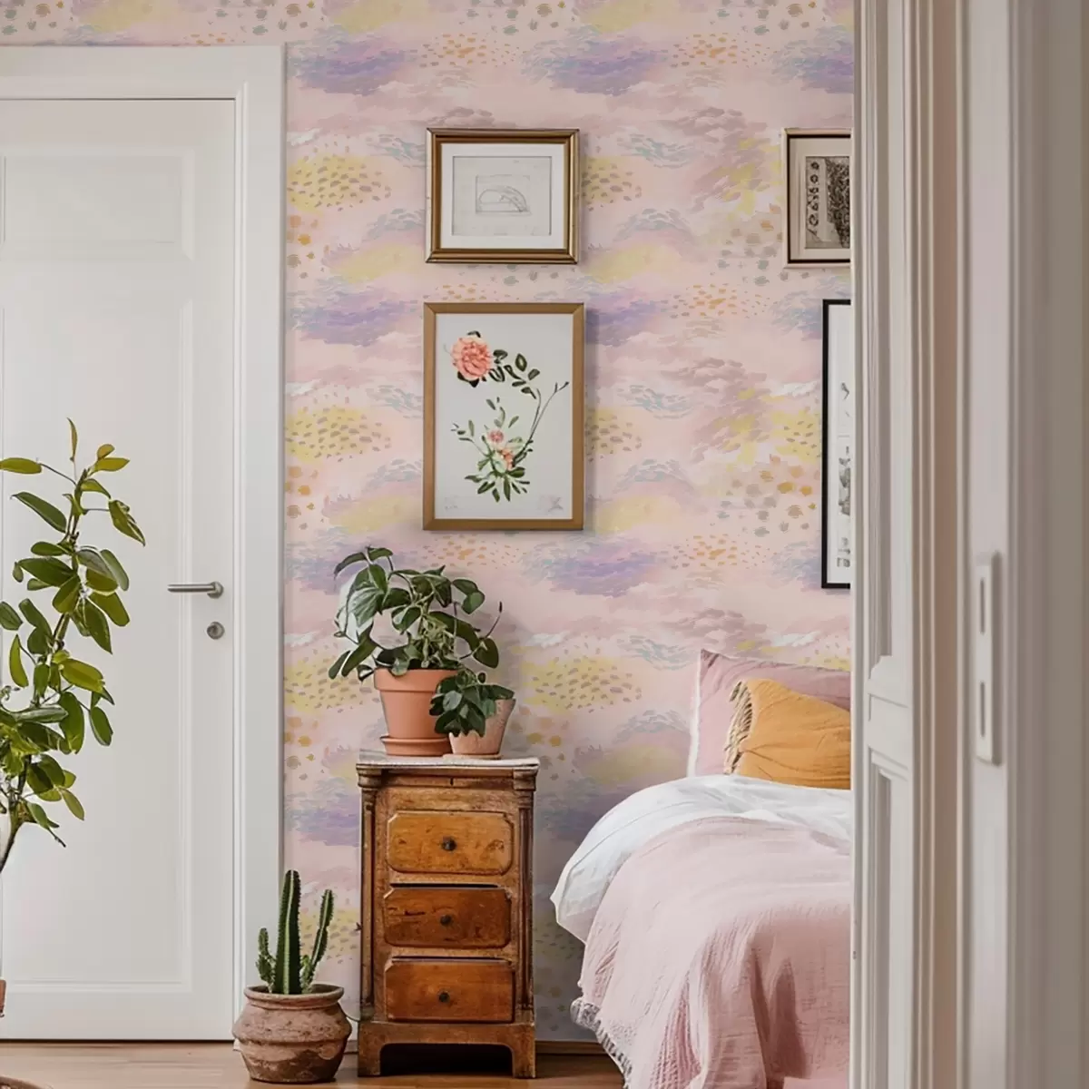 Tapet Rosa pastellabstraksjon med myke penselstrøk Nr. a00999v2