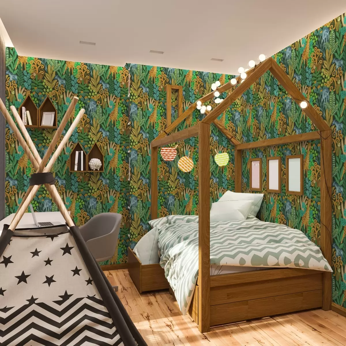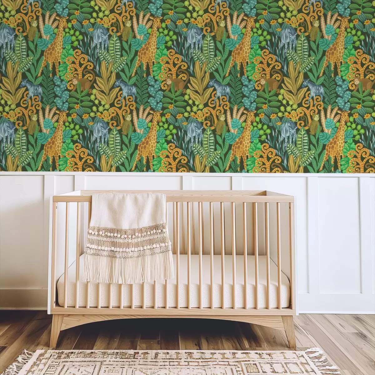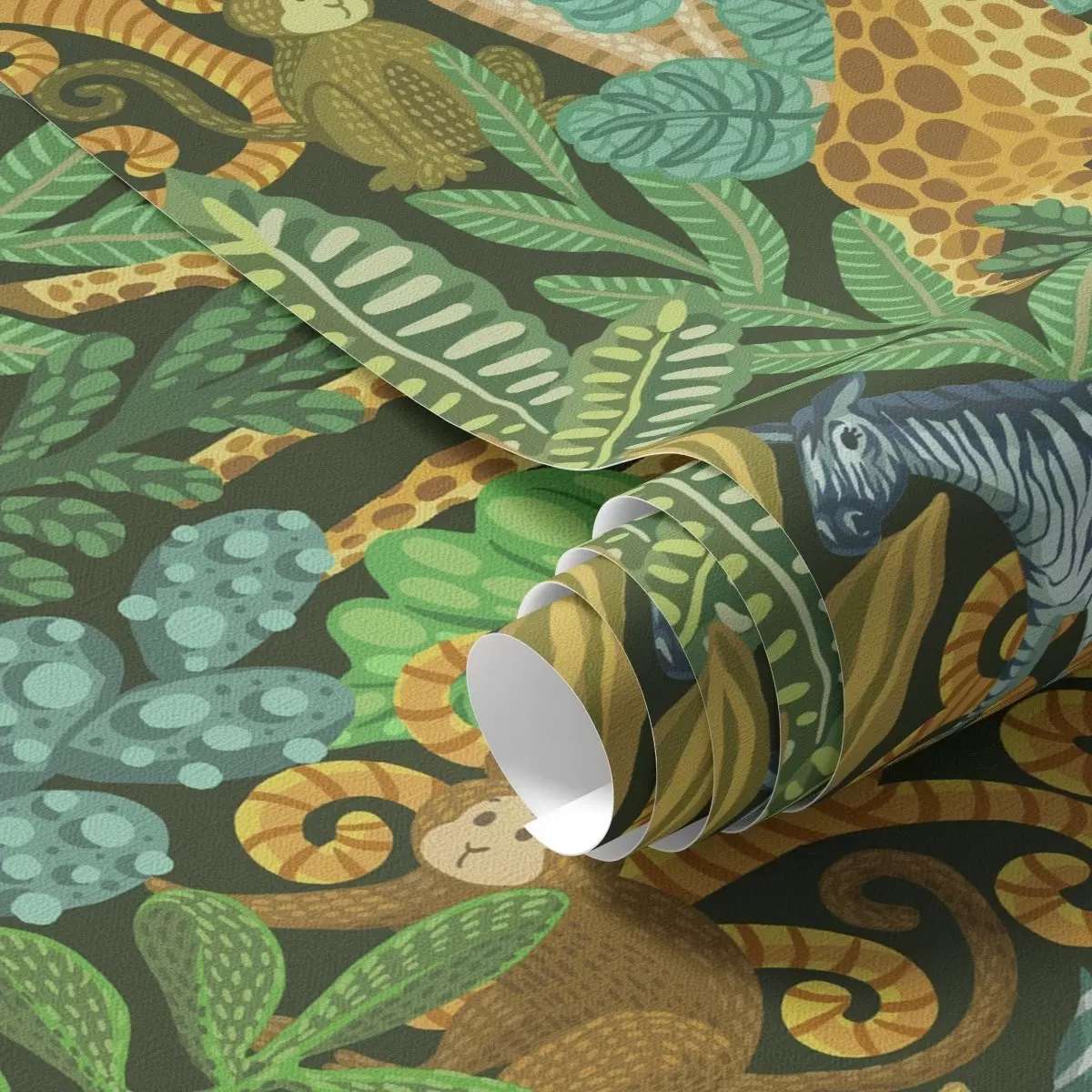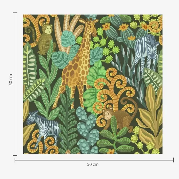 Tapet Tett jungel med dyr på mørkegrønn bakgrunn Nr. a01000v2