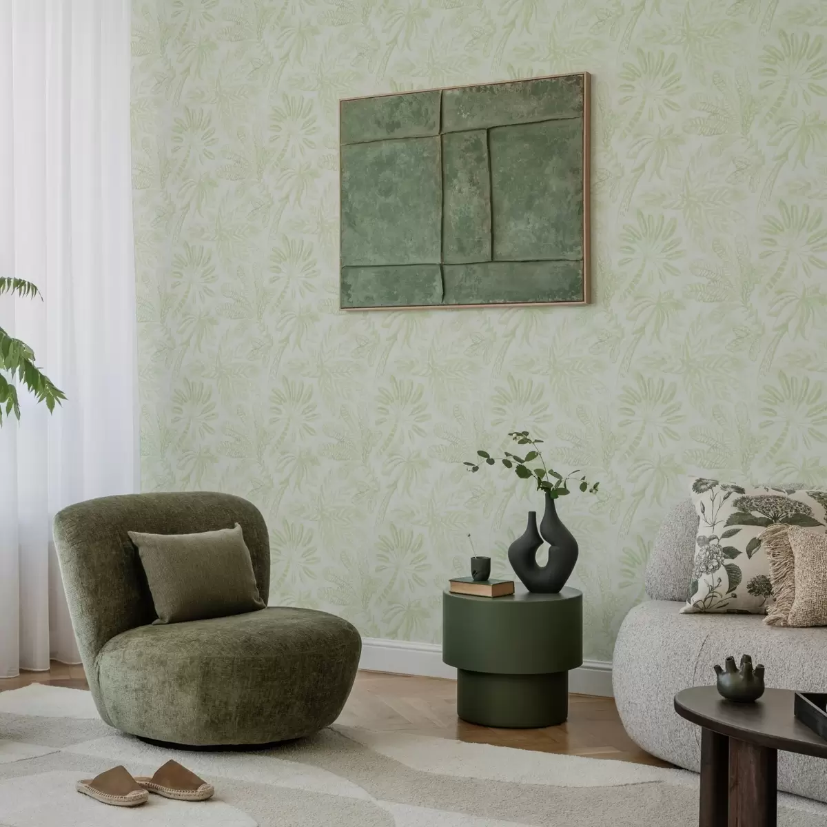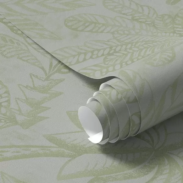 Tapet Skisserte tropiske blader i friske lysegrønne toner Nr. a01001v1