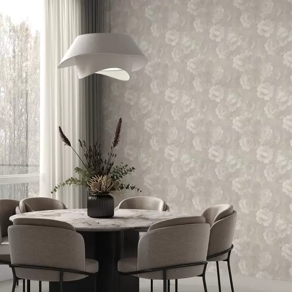 Tapet Blekede pioner på lintekstur i en myk beige palett Nr. a01018