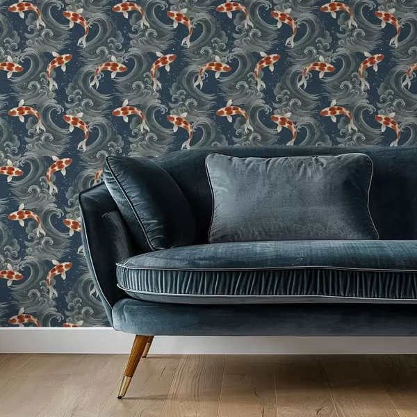 Tapet Koi-fisk som svømmer blant dramatiske havbølger Nr. a01019
