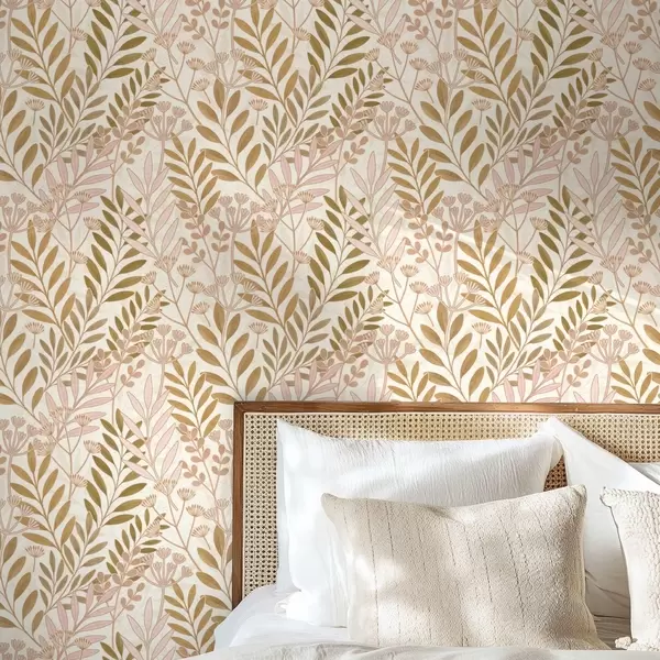 Tapet Lyst botanisk mønster med delikate rosa og havrefargede blader Nr. a01020v1