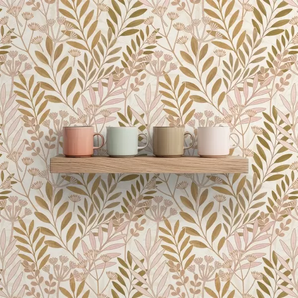 Tapet Lyst botanisk mønster med delikate rosa og havrefargede blader Nr. a01020v1
