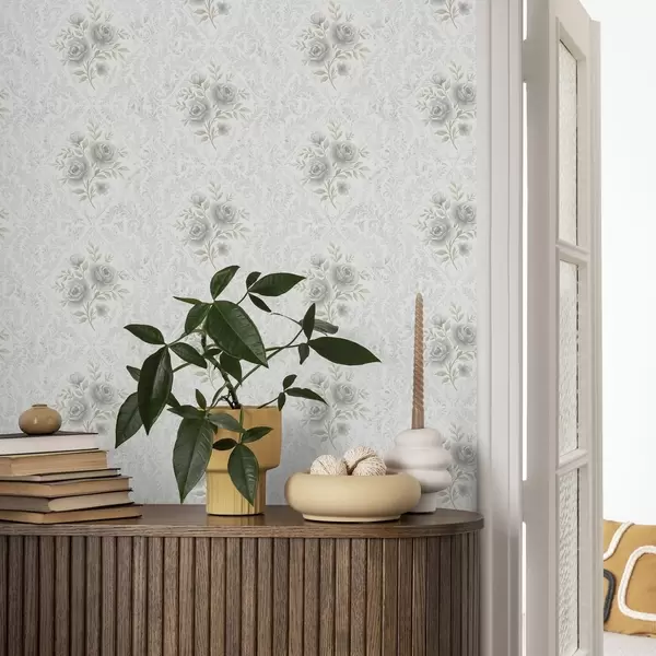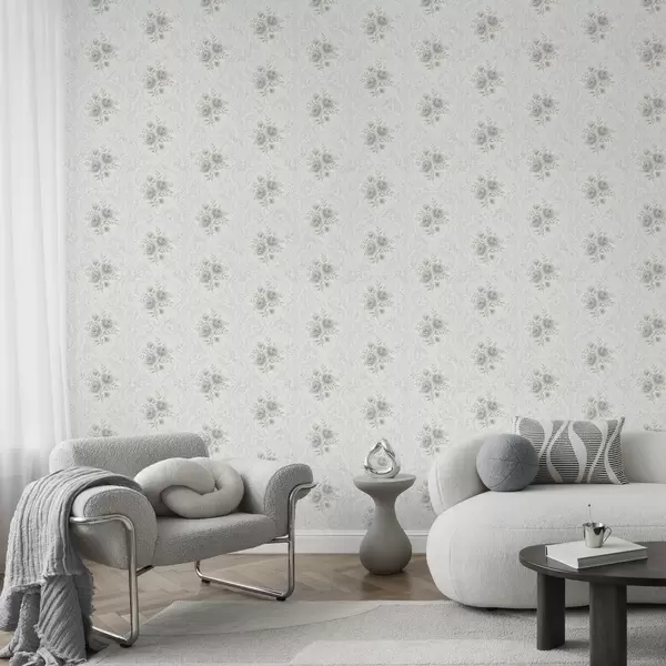 Tapet Lyst damaskmønster med grå roser i myke romber Nr. a01024
