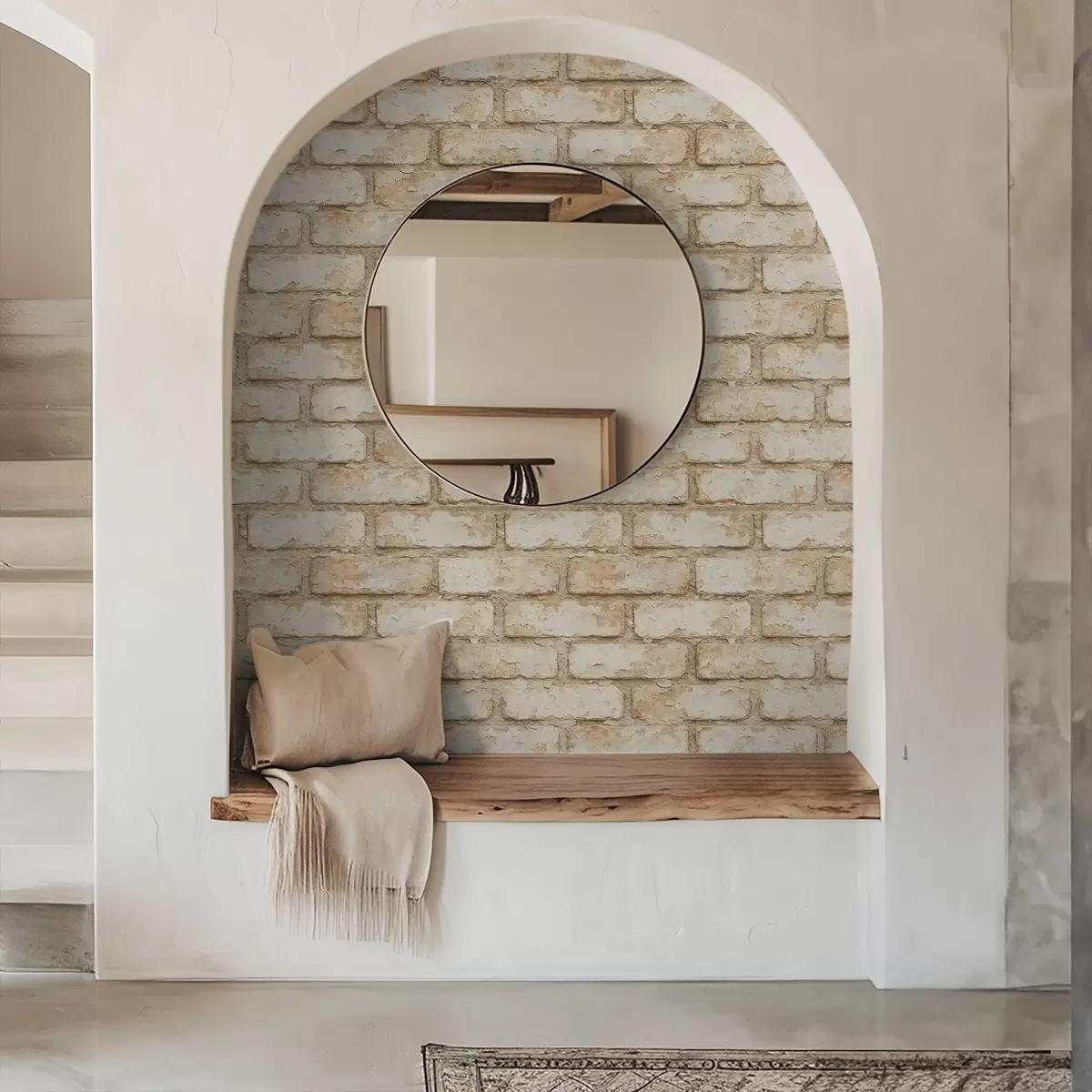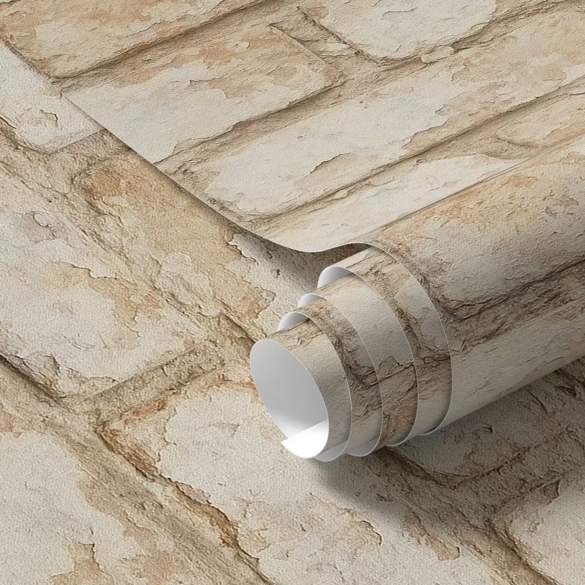 Tapet Gammel lys beige mursteinstruktur Nr. a01029