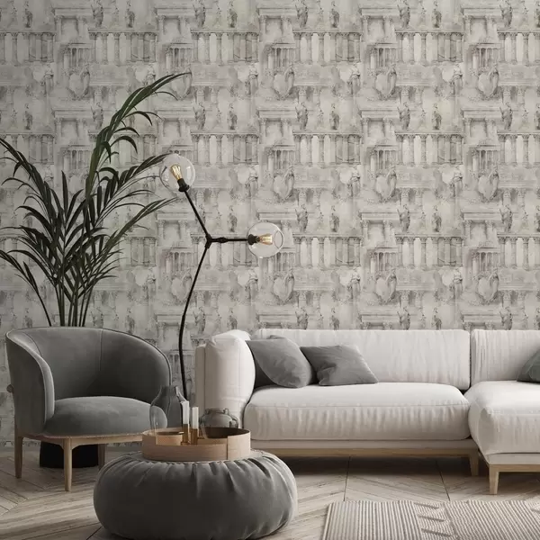 Tapet Antikke statuer og søyler i myke beige-grå toner Nr. a01041