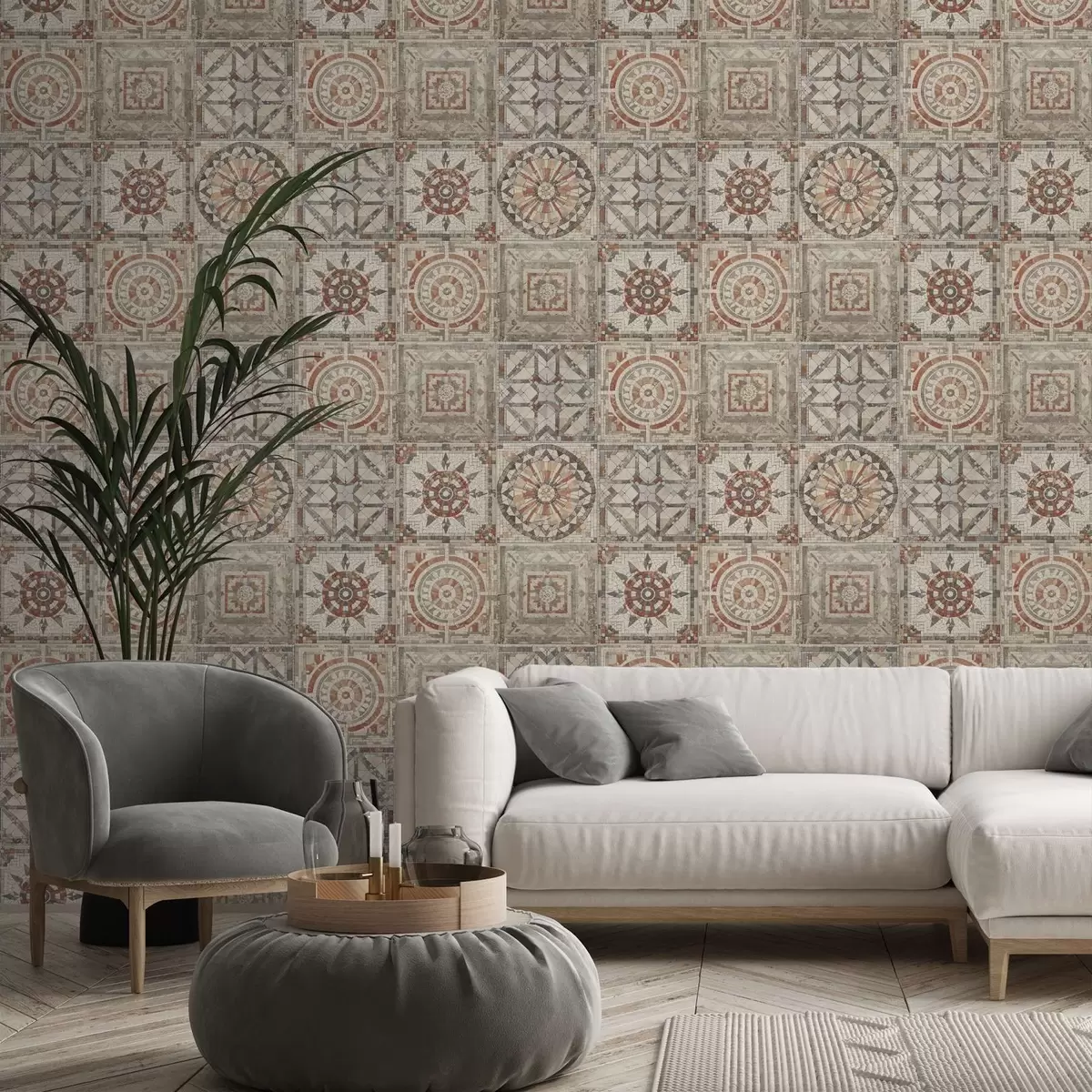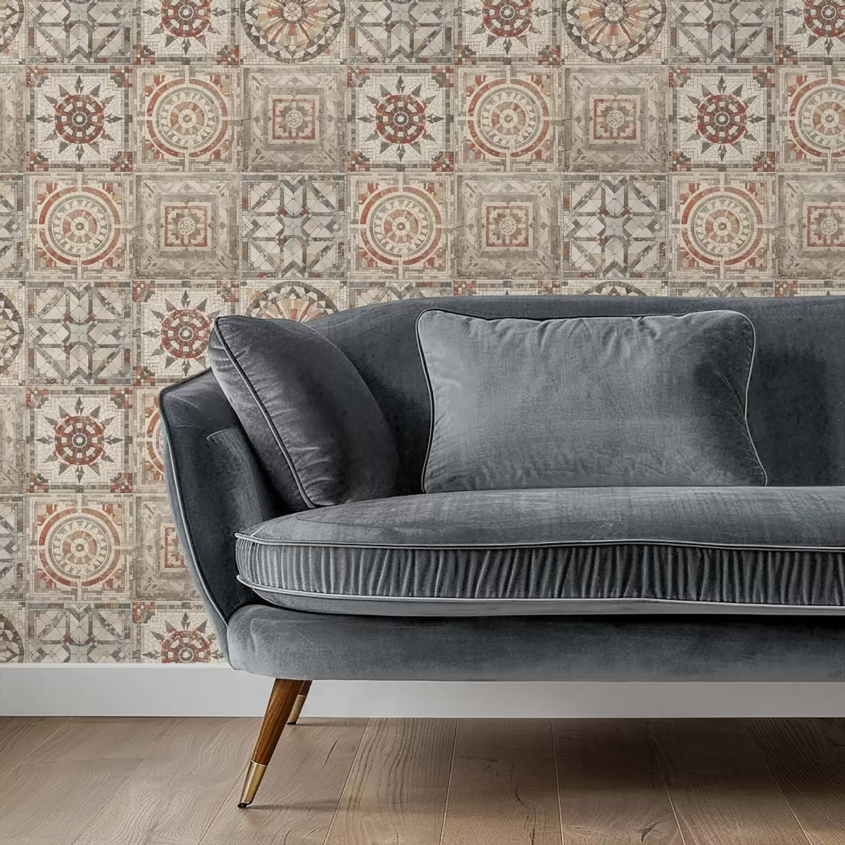 Tapet Gamle steinmosaikkmedaljonger med slitte detaljer Nr. a01042