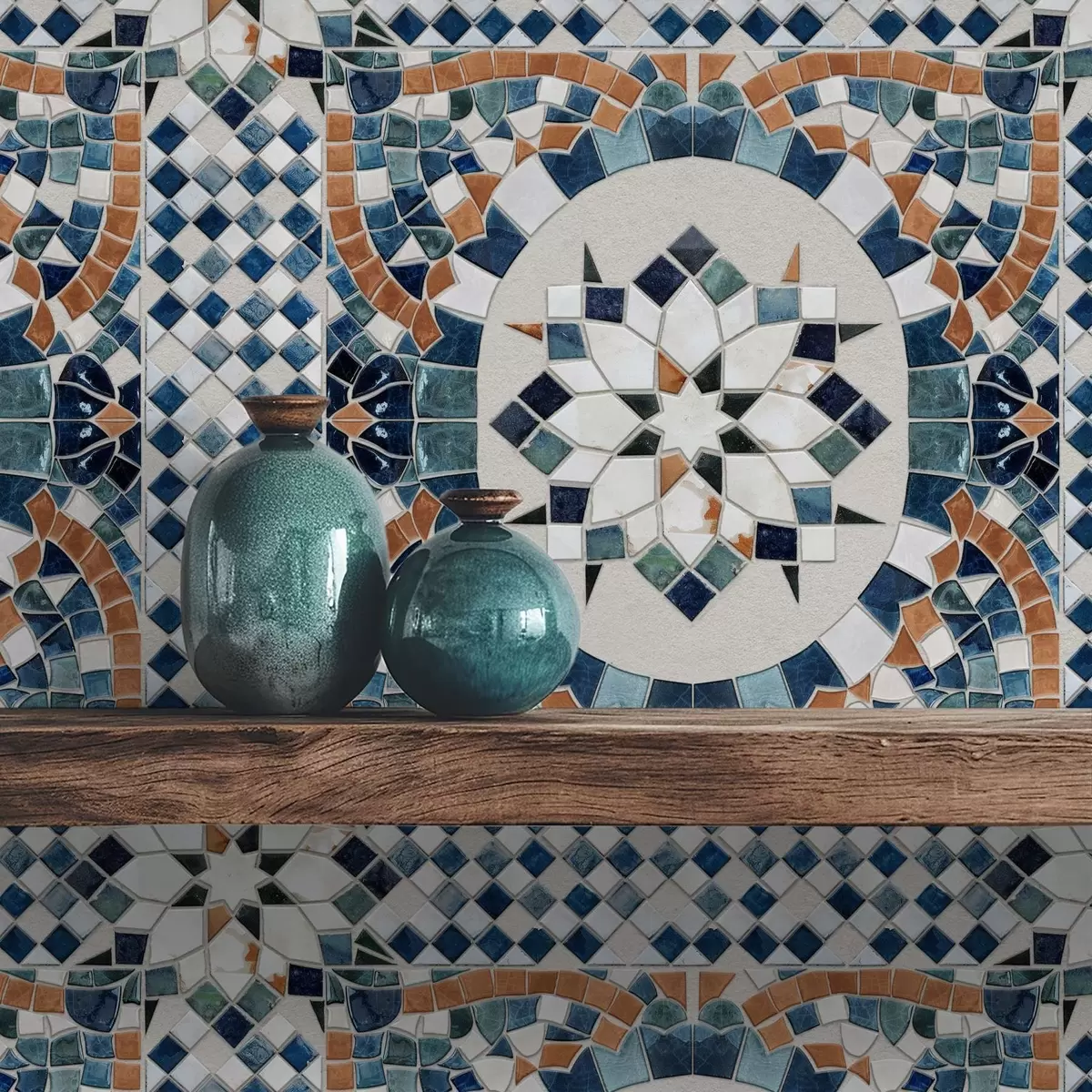 Tapet Lys marokkansk mosaikk i blå-turkise toner Nr. a01043