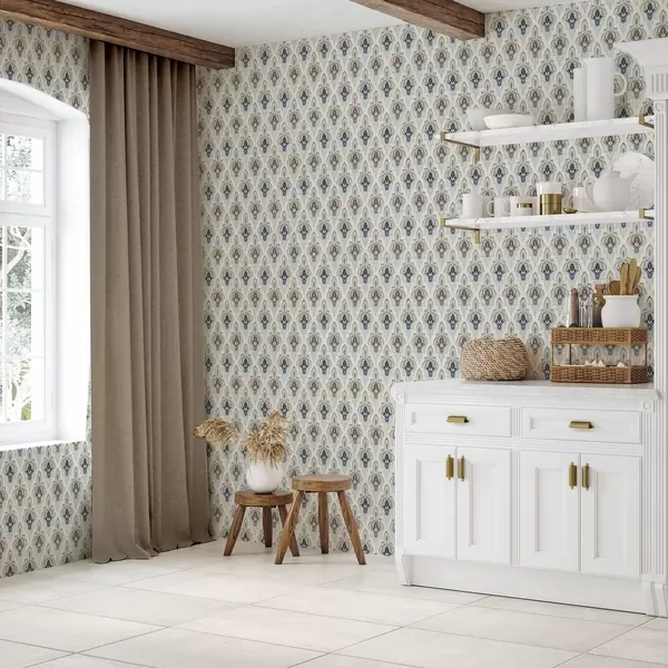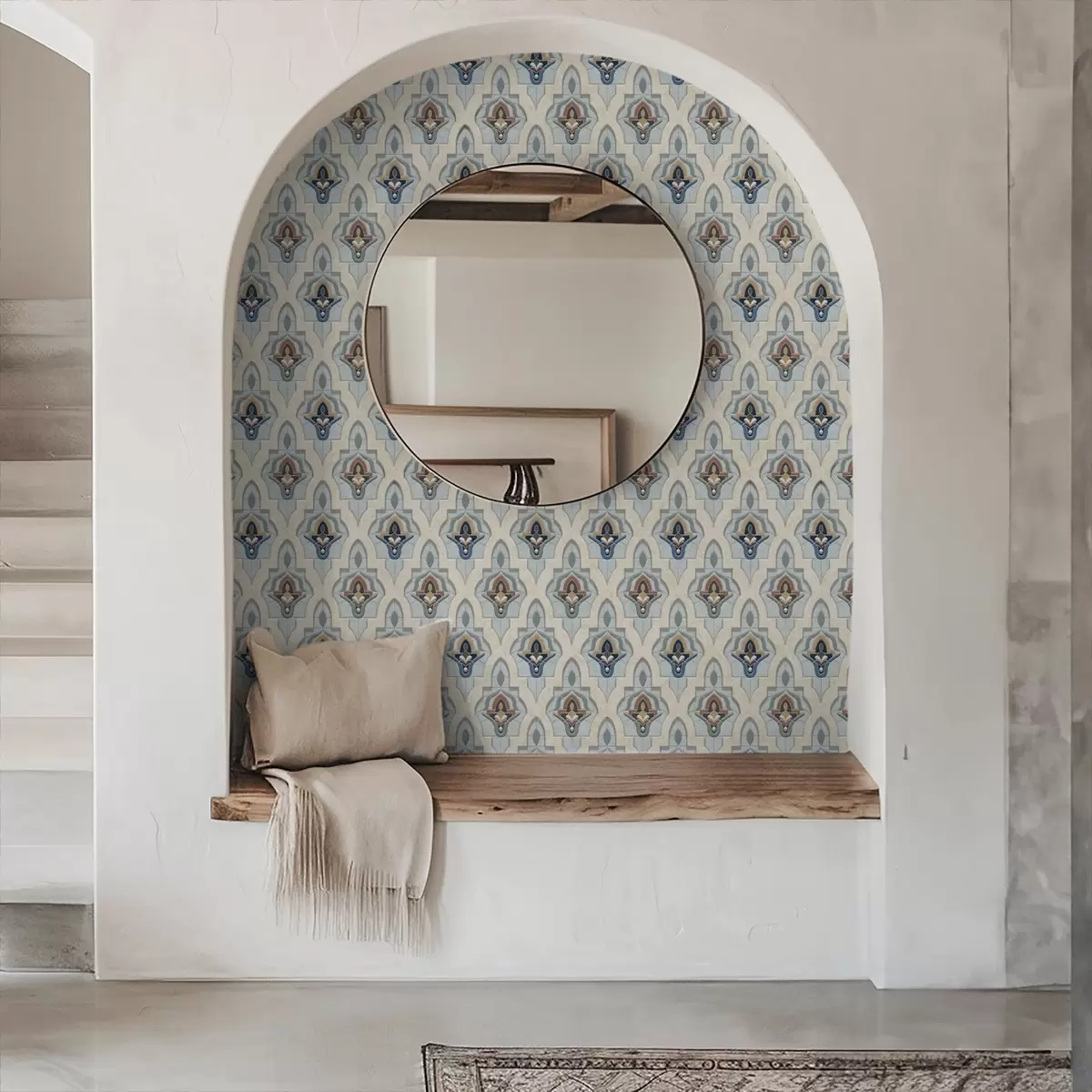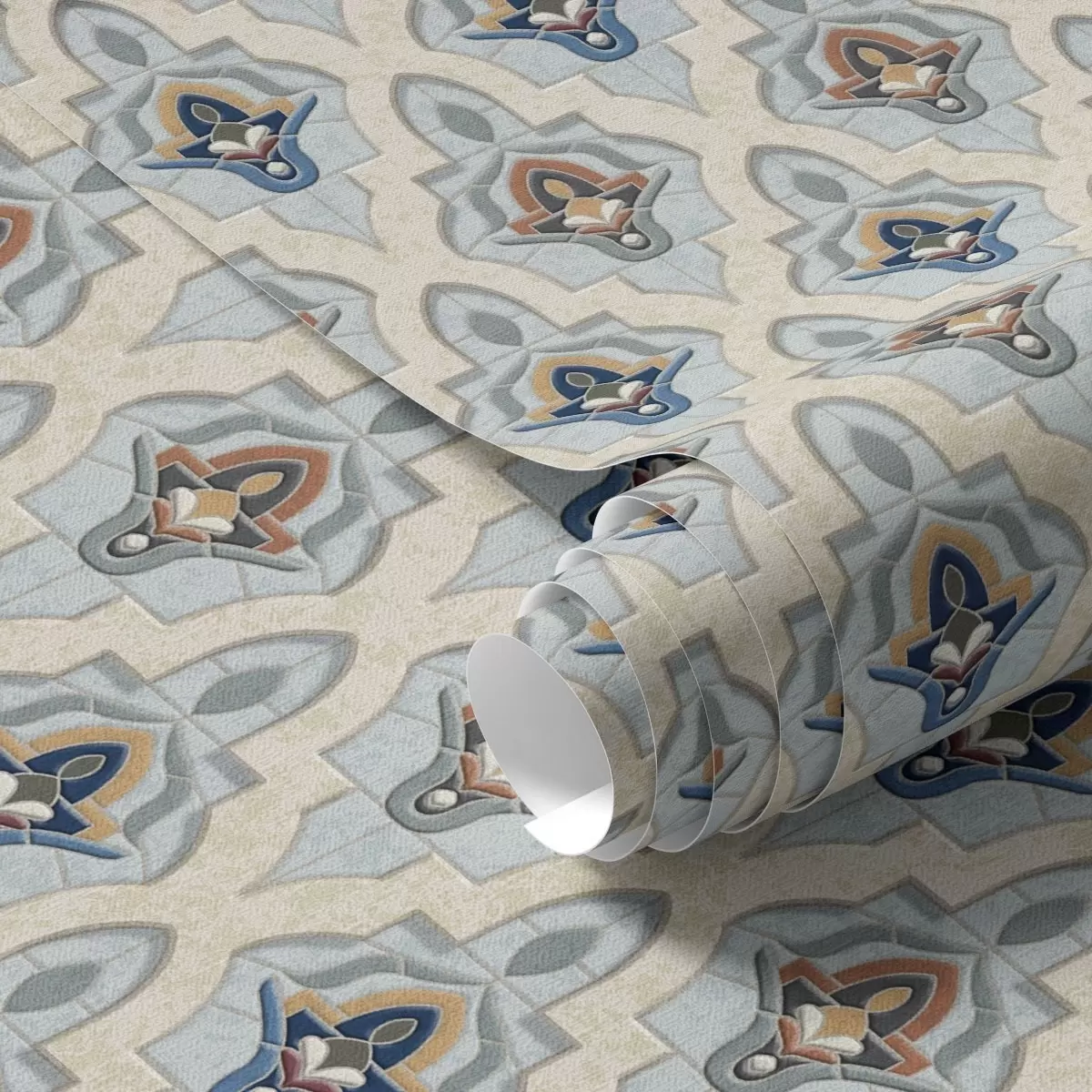 Tapet Orientalsk mønster av små fliser i en blå-sand-palett Nr. a01044