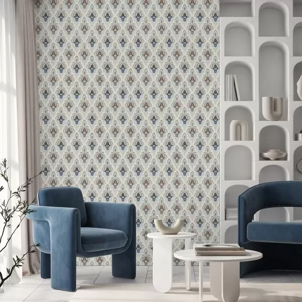 Tapet Orientalsk mønster av små fliser i en blå-sand-palett Nr. a01044
