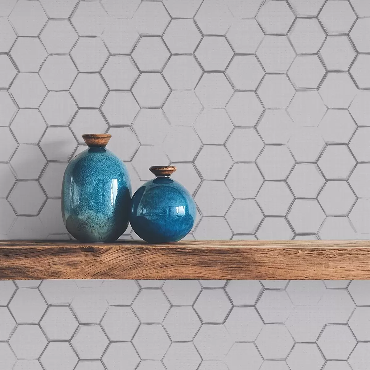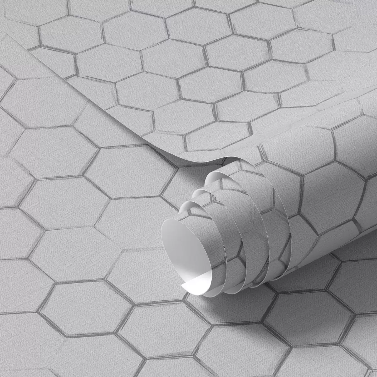 Tapet Fint sekskantet rutenett på en lysegrå strukturert bakgrunn Nr. a01060