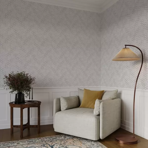 Tapet Lett bikakemønster med tynne grå konturer Nr. a01061