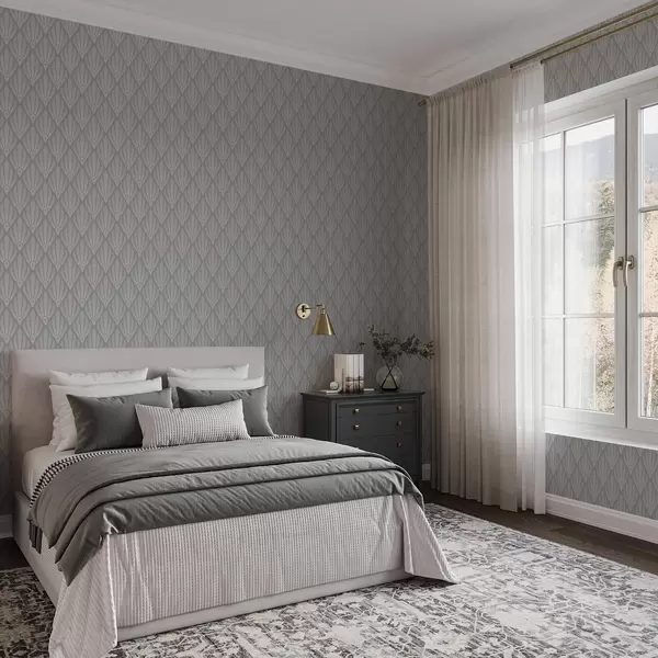 Tapet Grå art deco med vifteformede former Nr. a01064