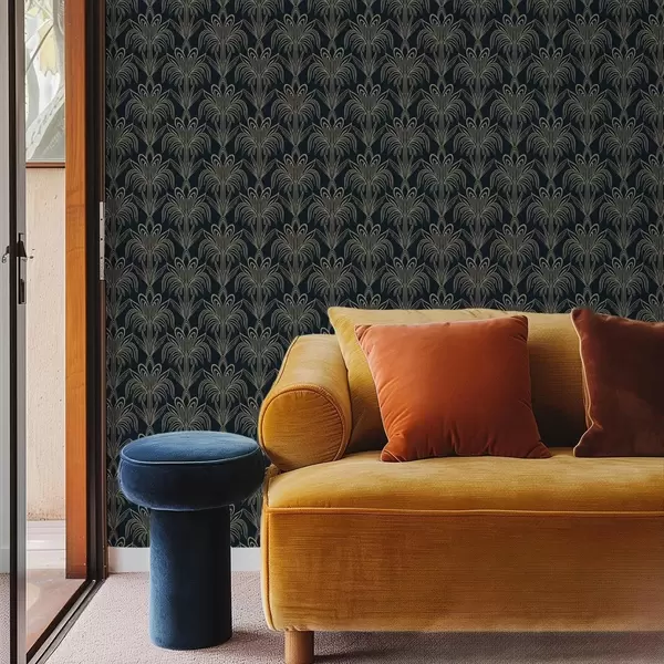 Tapet Mørkt art deco-ornament med stiliserte planter Nr. a01065