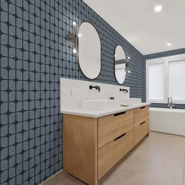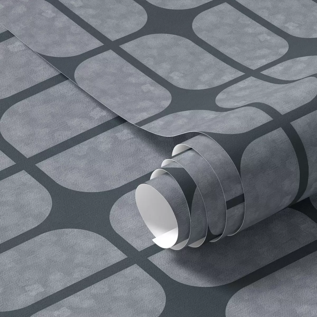 Tapet Mørkeblå bakgrunn med grå mosaikk av avrundede fliser Nr. a01068v1
