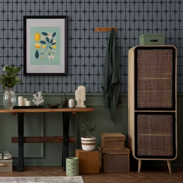 Tapet Mørkeblå bakgrunn med grå mosaikk av avrundede fliser Nr. a01068v1