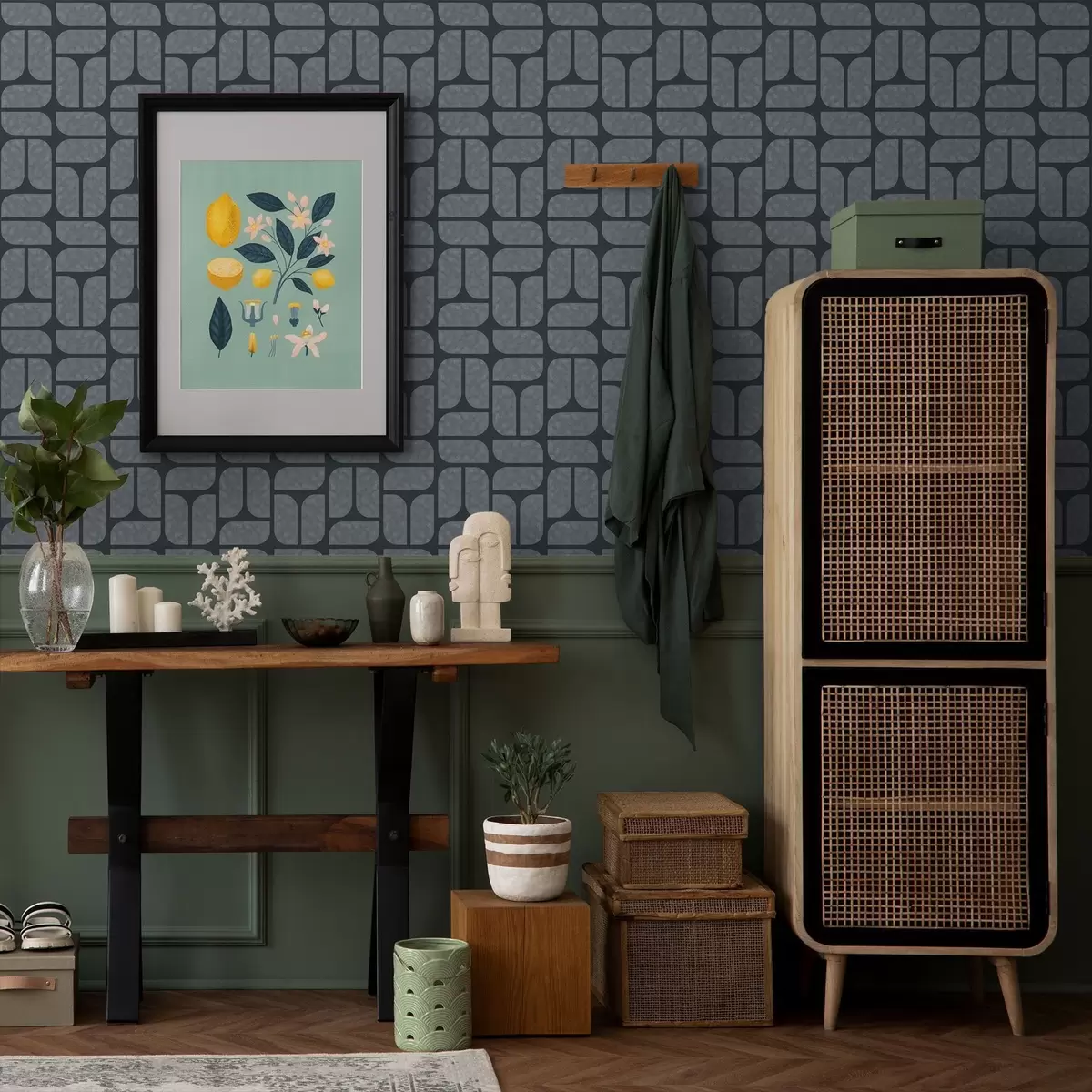 Tapet Mørk bakgrunn med grå mosaikk av avrundede moduler Nr. a01069v1