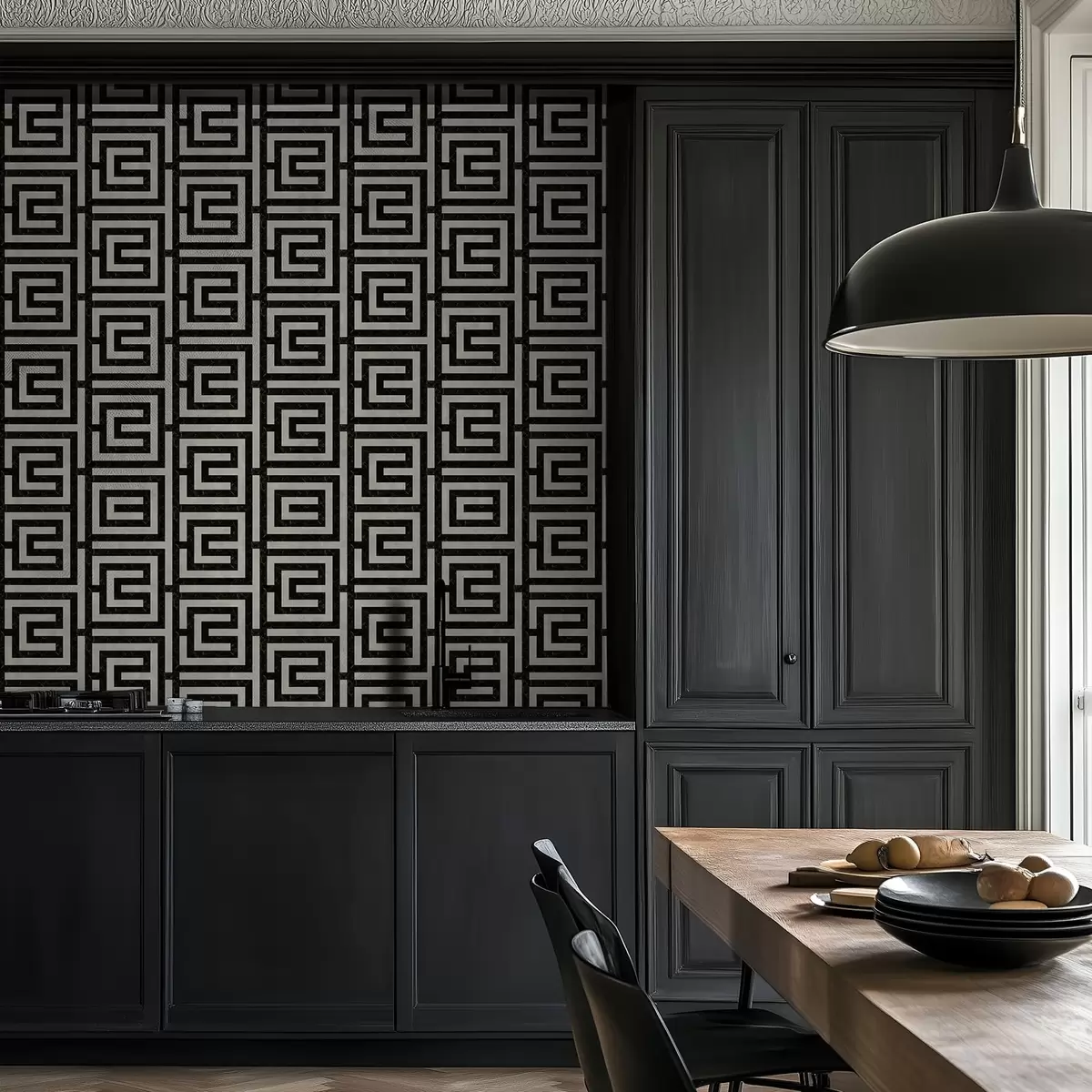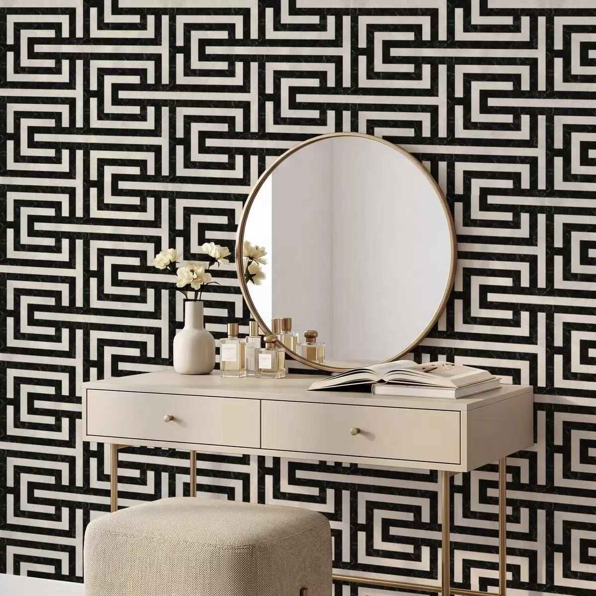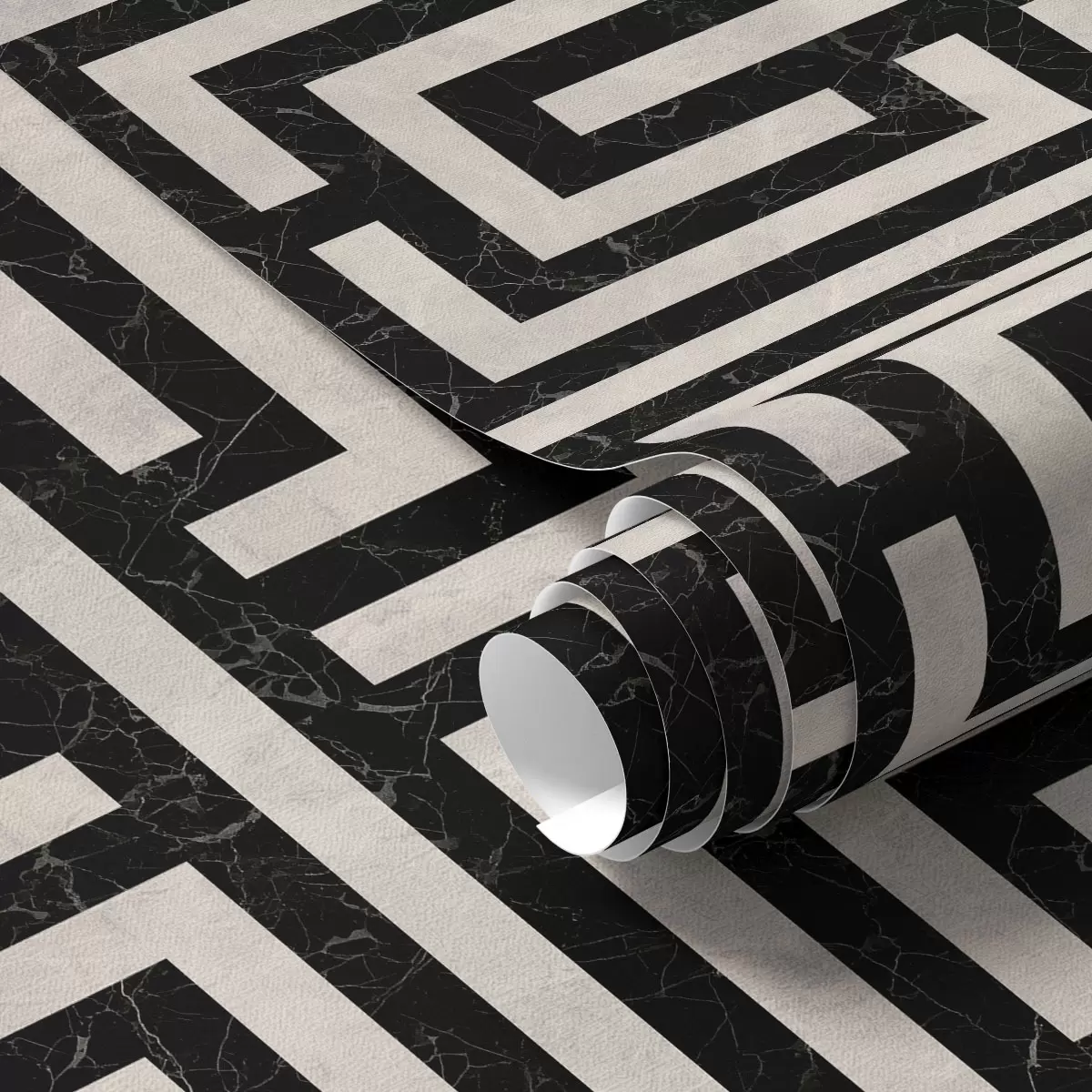 Tapet Svart og hvitt geometrisk labyrintmønster Nr. a01073