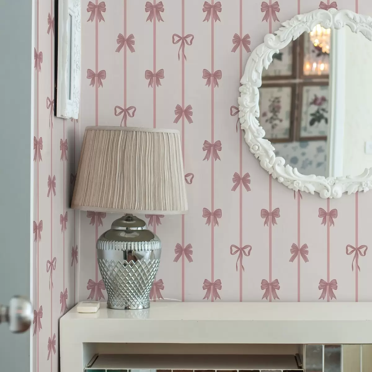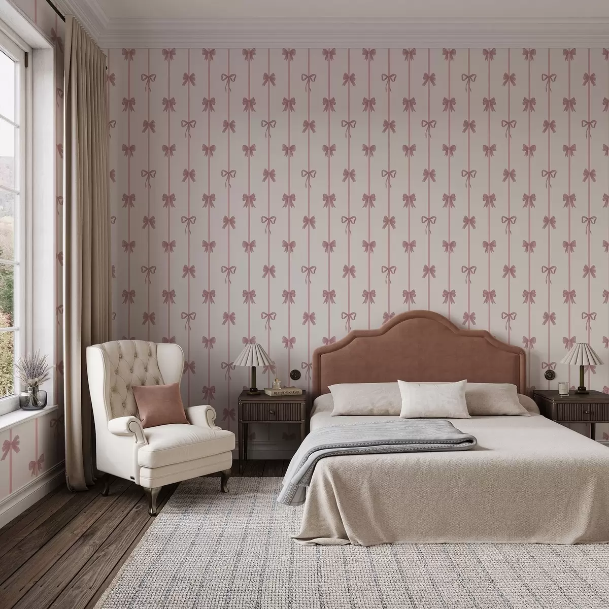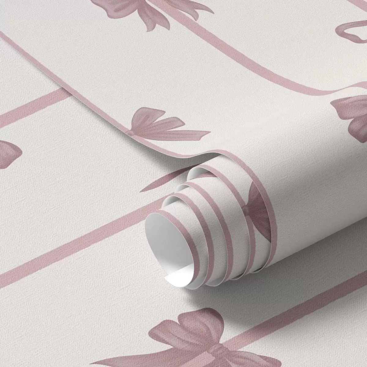 Tapet Rosa sløyfer med bånd på lys bakgrunn Nr. a01074