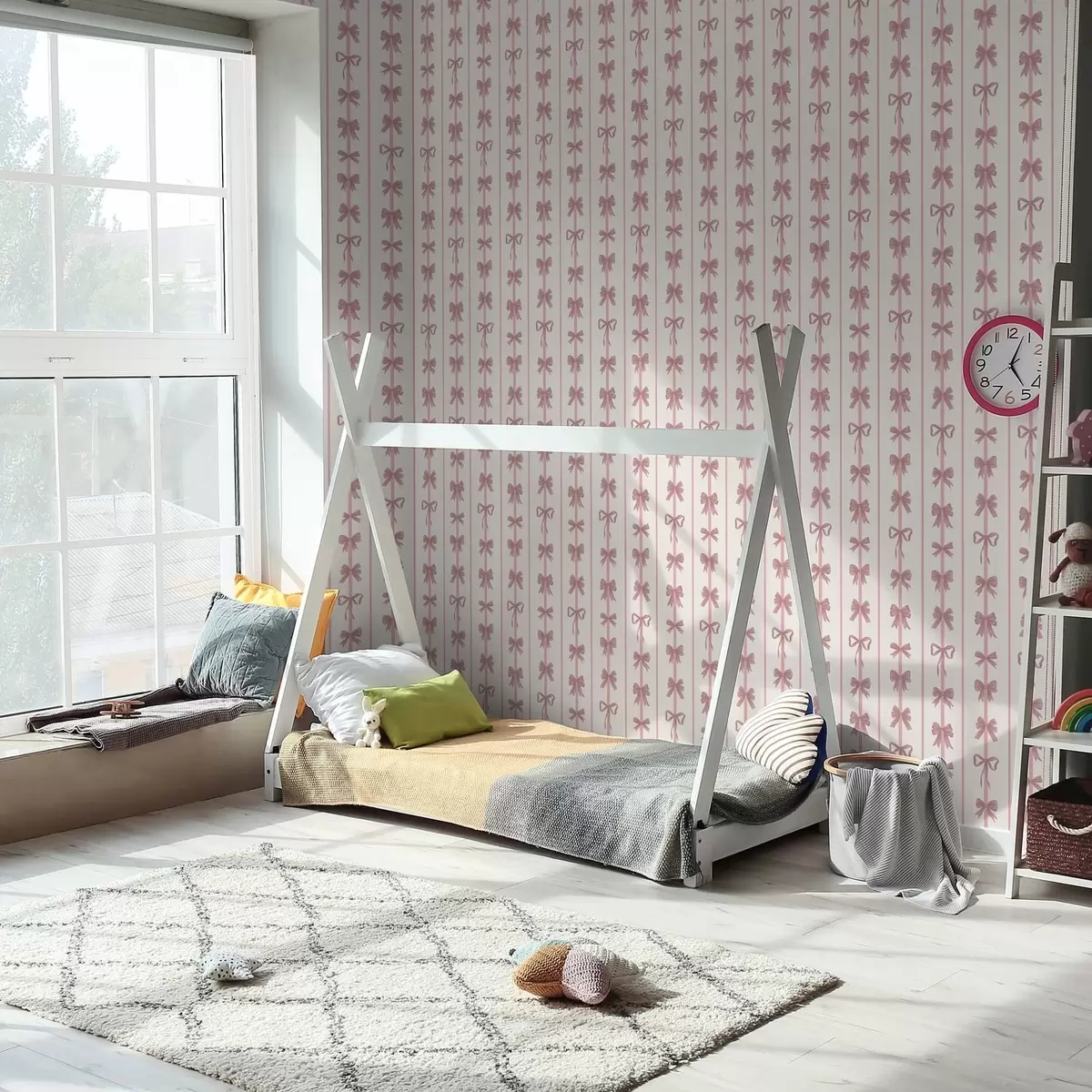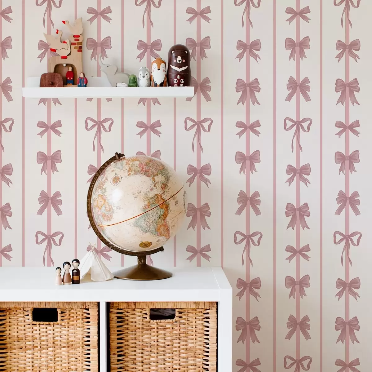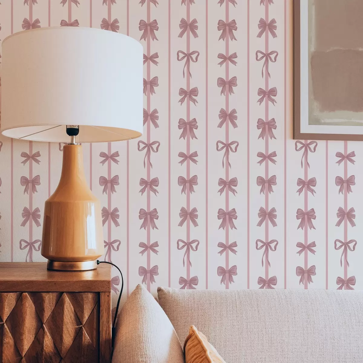Tapet Rosa sløyfer i vertikale striper på lys bakgrunn Nr. a01075