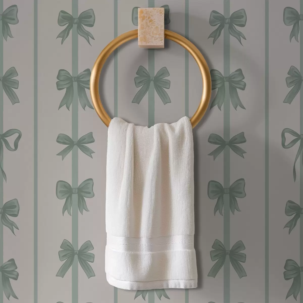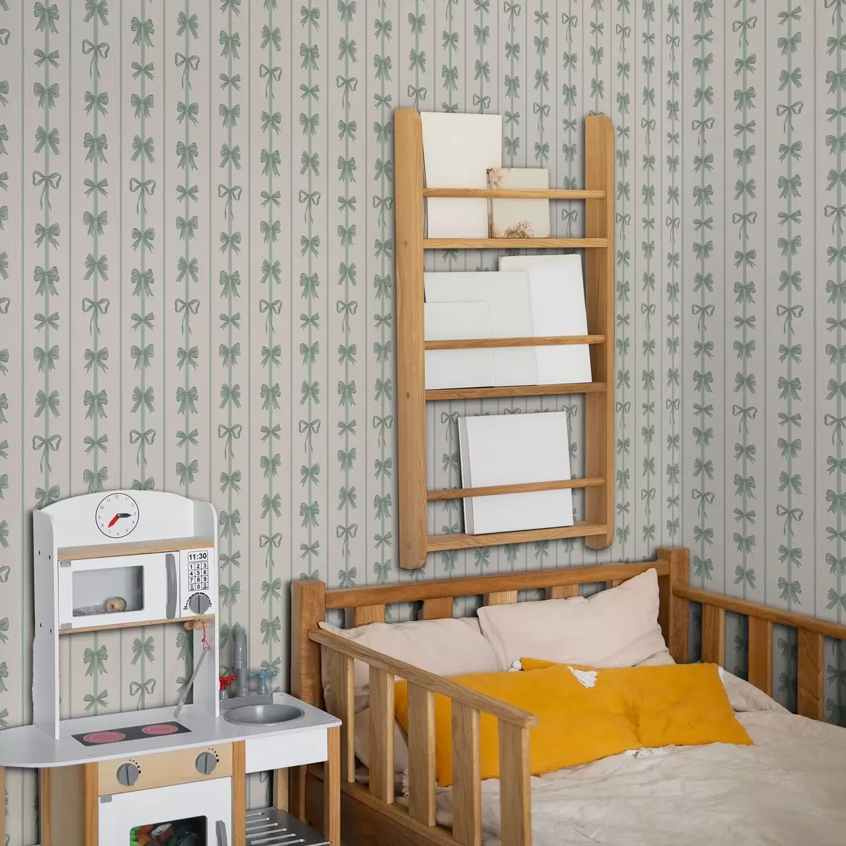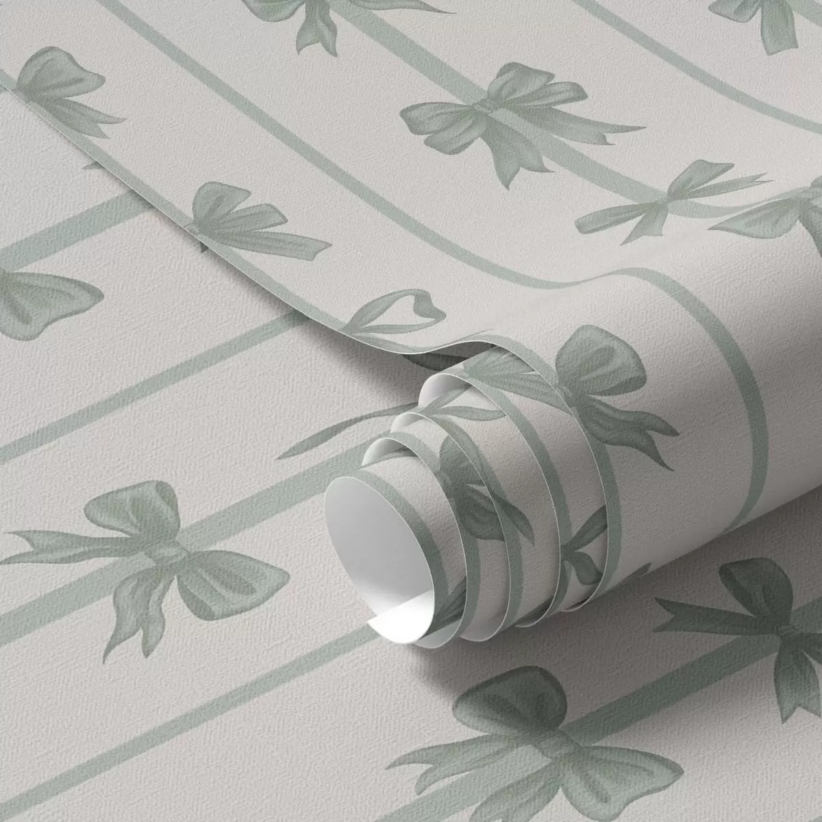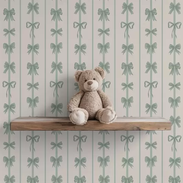 Tapet Grønne sløyfer i striper på beige bakgrunn Nr. a01075v1