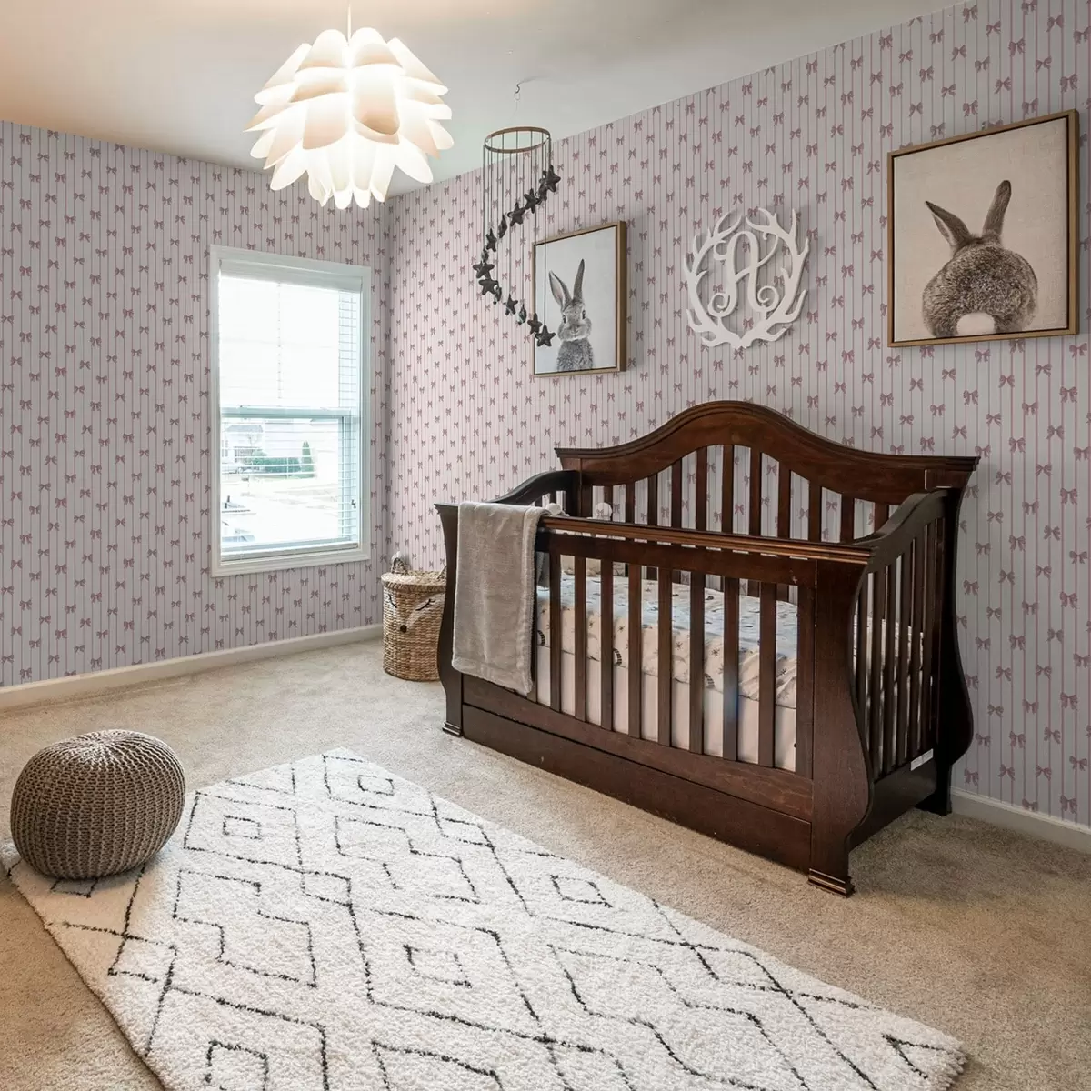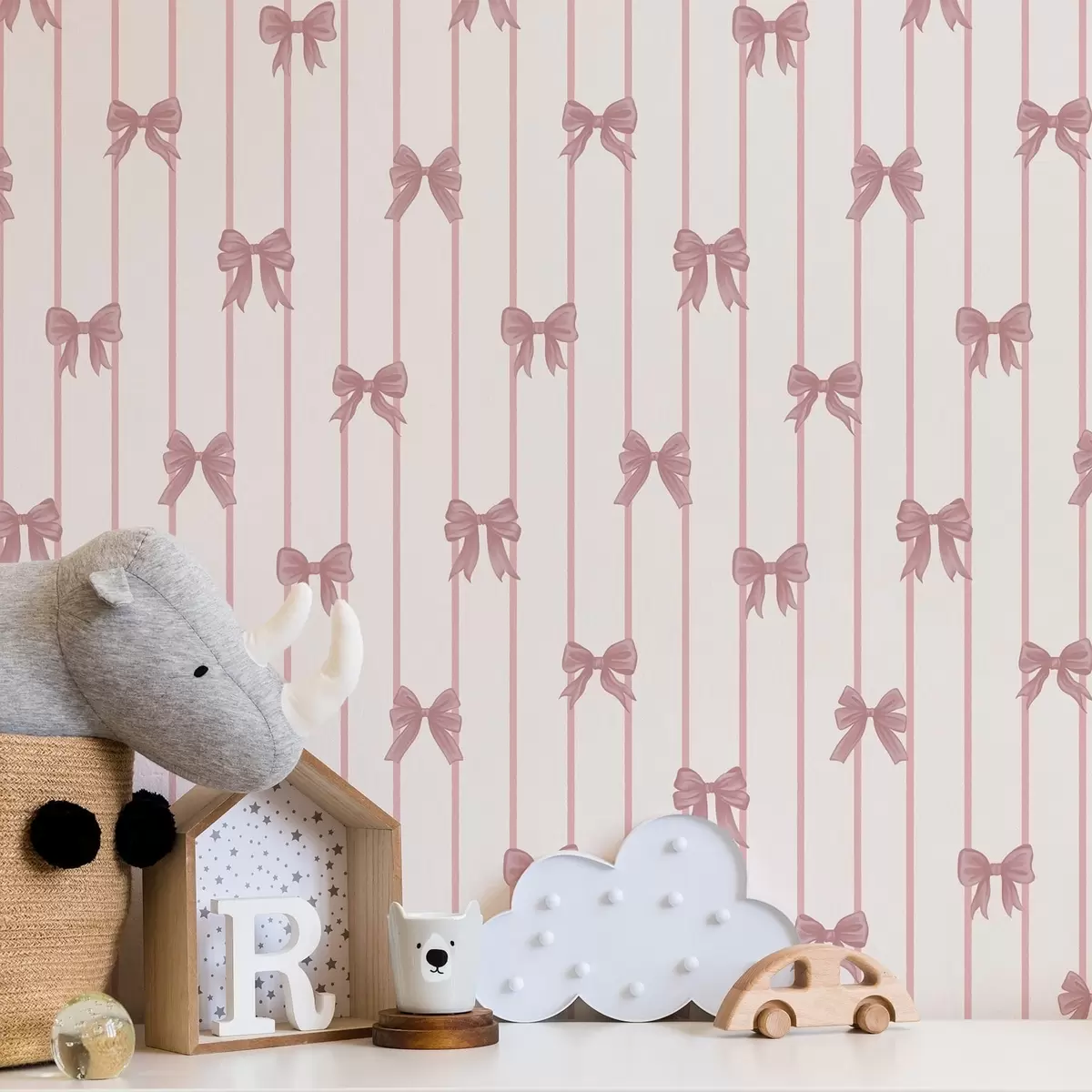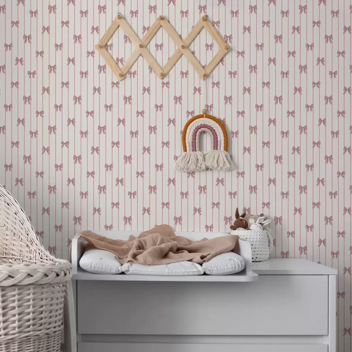 Tapet Små rosa sløyfer i vertikale striper Nr. a01076