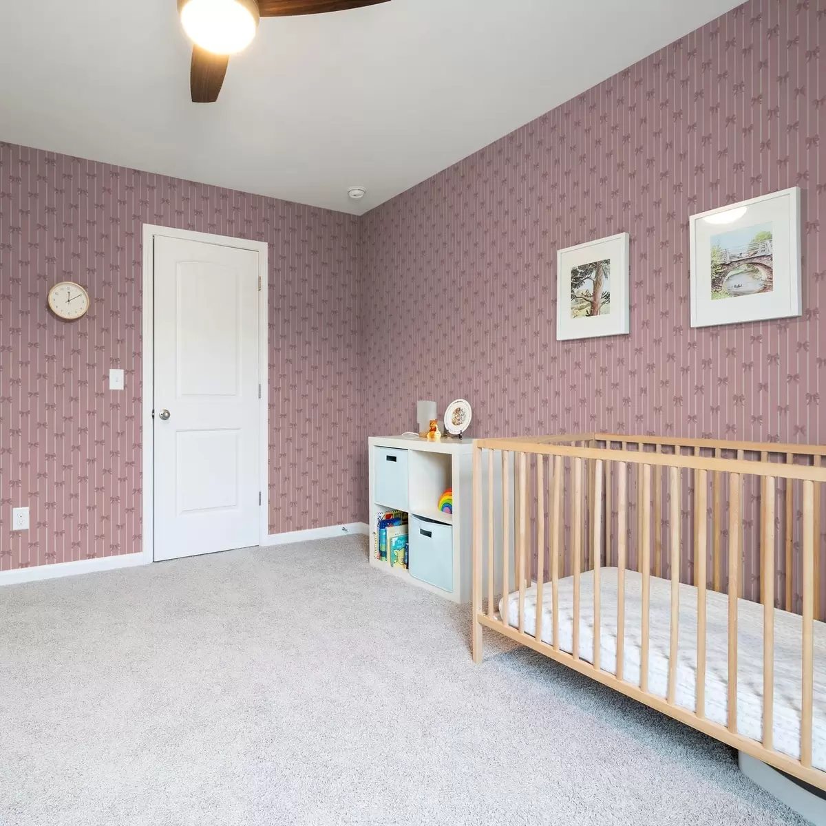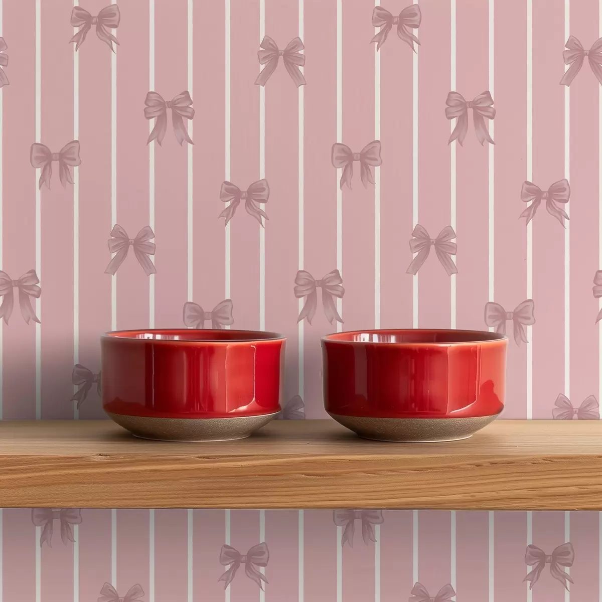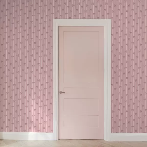 Tapet Små rosa sløyfer på rosa stripete bakgrunn Nr. a01076v1