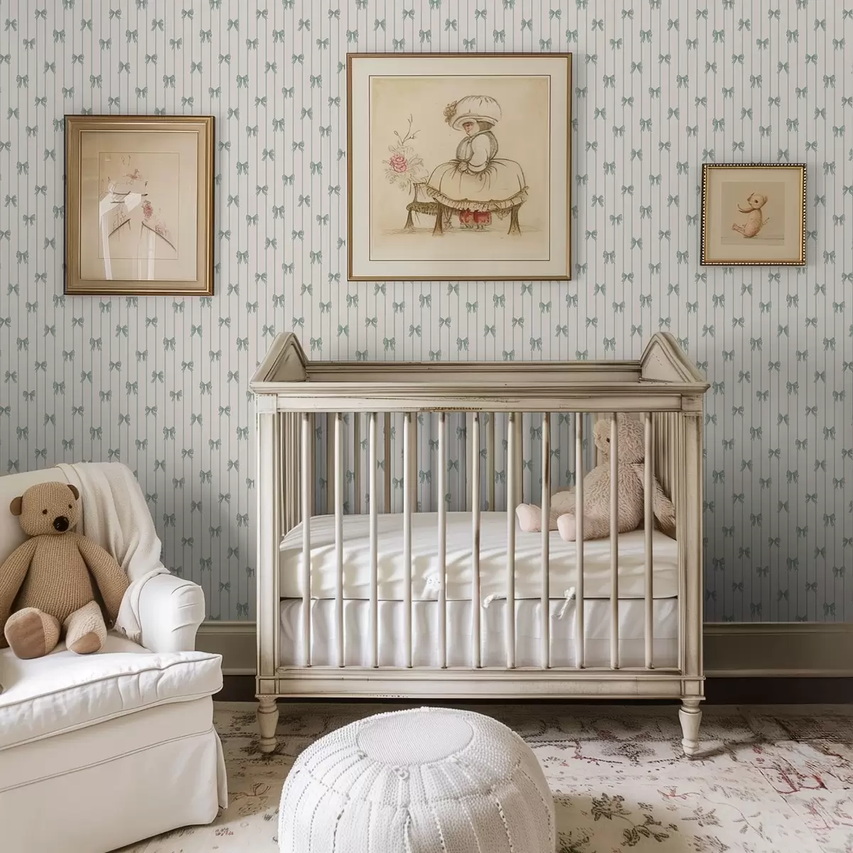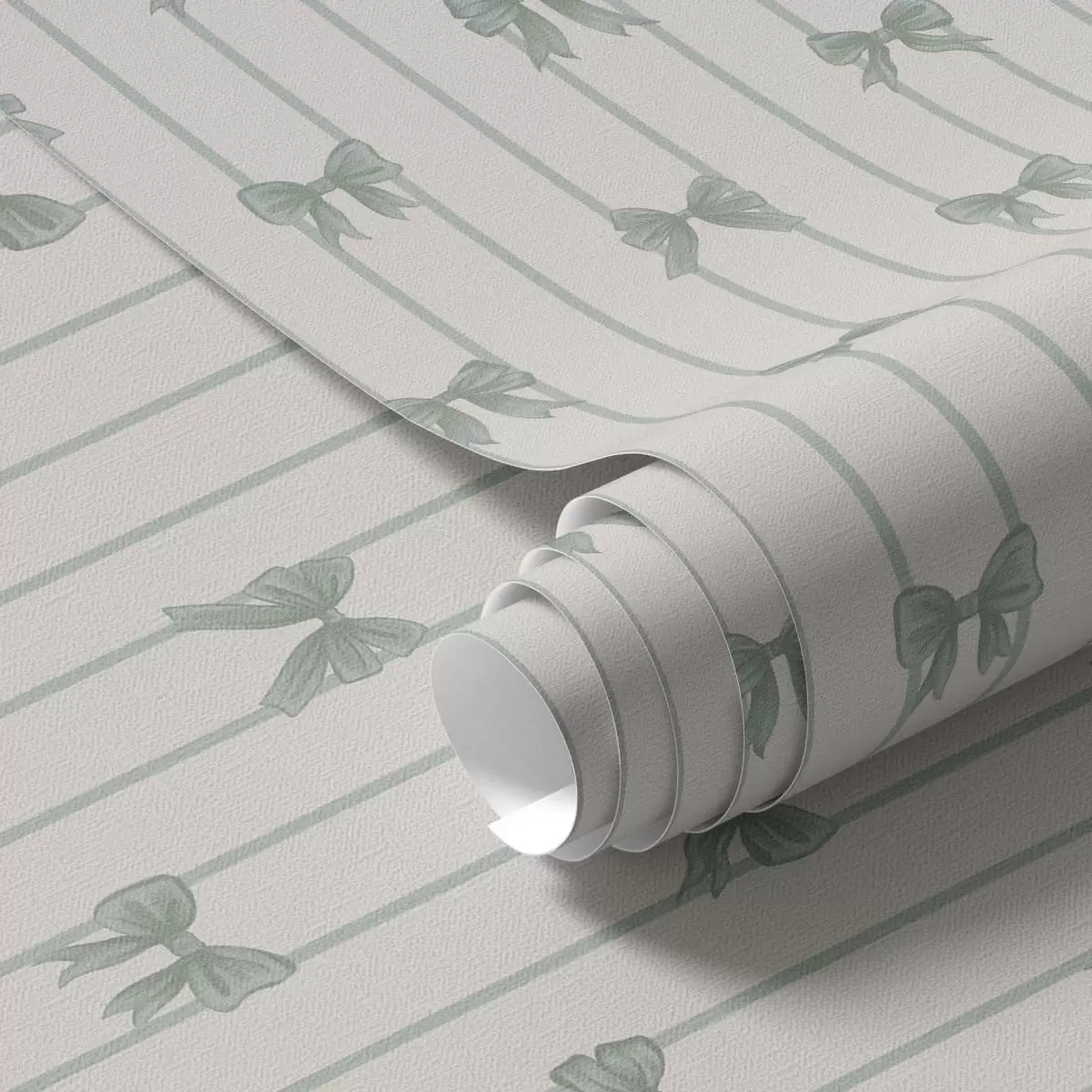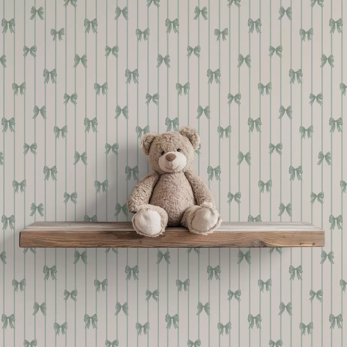 Tapet Små grønne sløyfer i striper på beige bakgrunn Nr. a01076v2