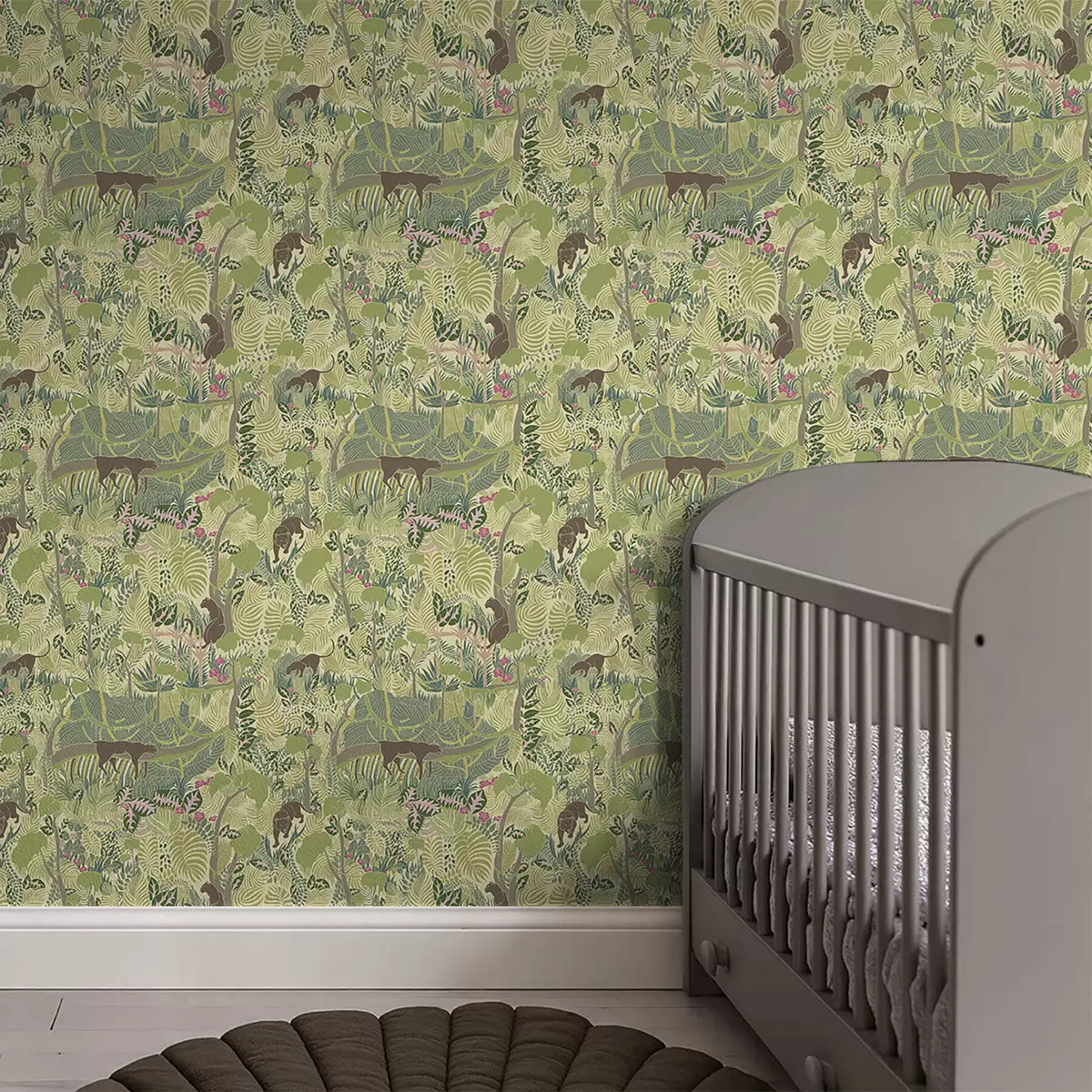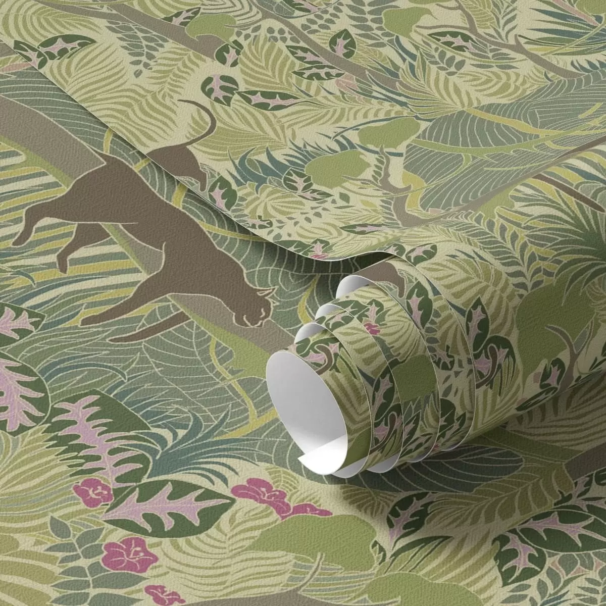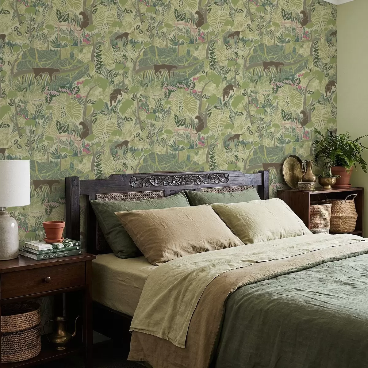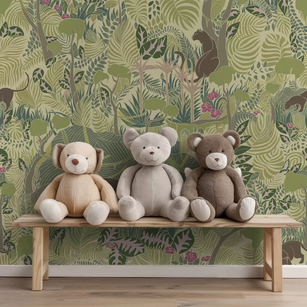 Tapet Skogscene med dyr og tett løvverk Nr. a01108