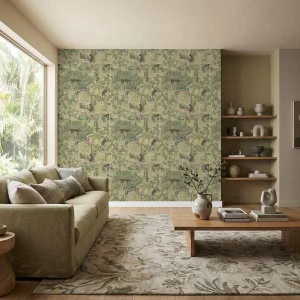 Tapet Skogscene med dyr og tett løvverk Nr. a01108