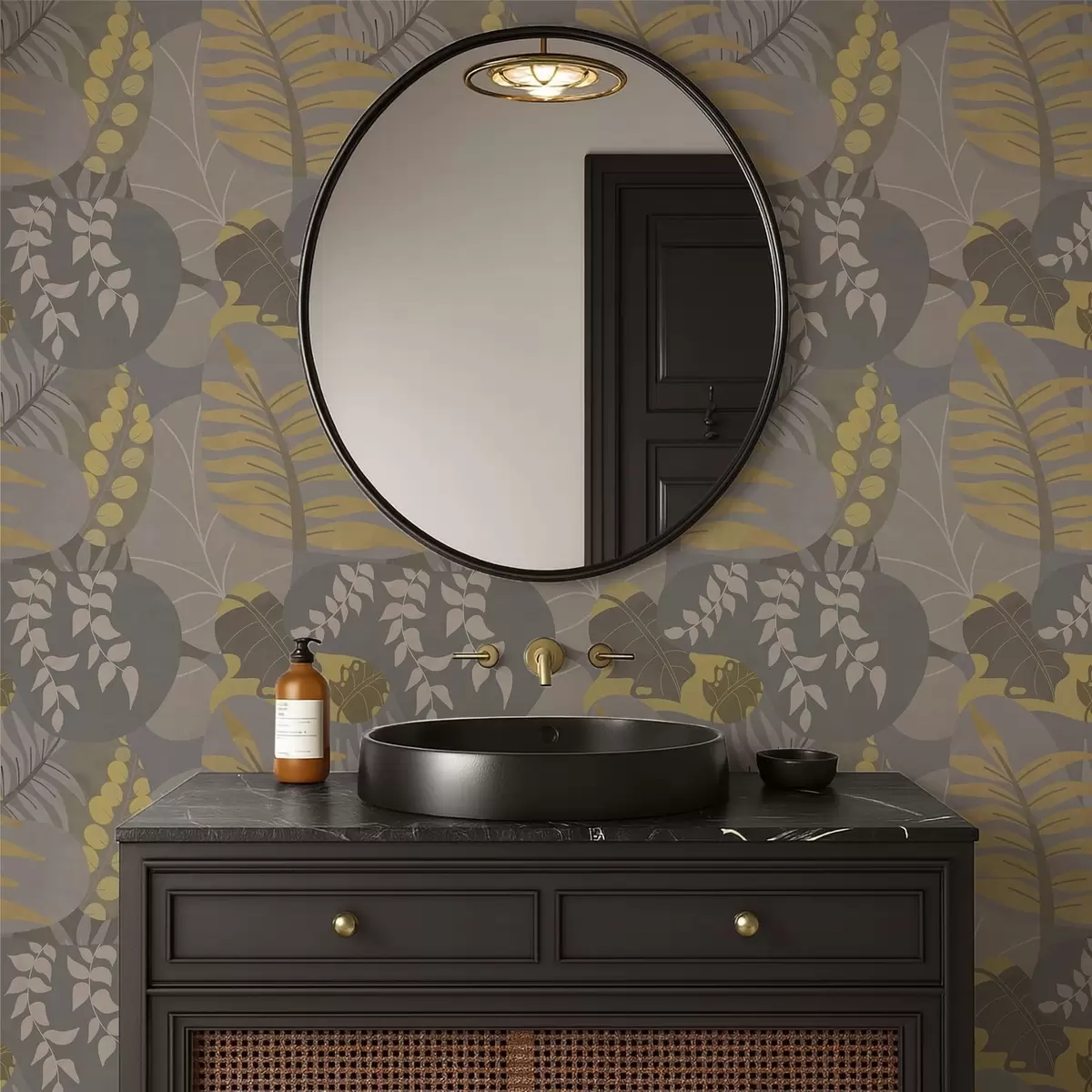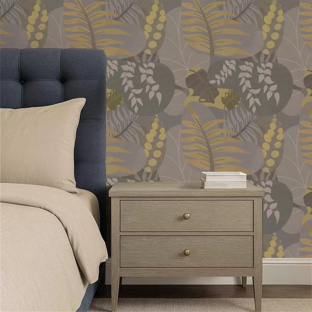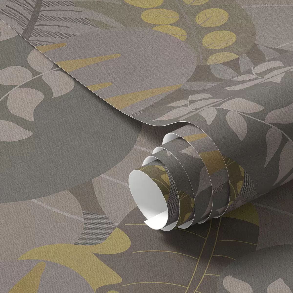 Tapet Abstrakte blader i grå og gule toner Nr. a01112