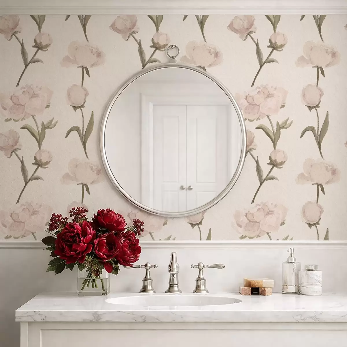 Tapet Myke rosa pioner på lys bakgrunn Nr. a01114