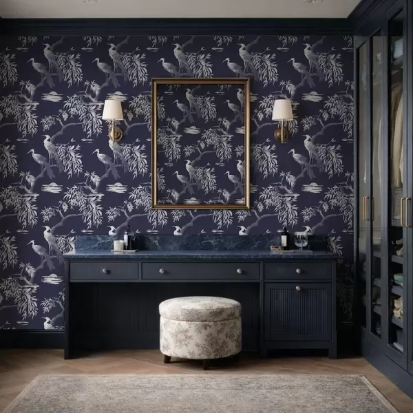 Tapet Fugler på gren på mørkeblå bakgrunn Nr. a01116v1
