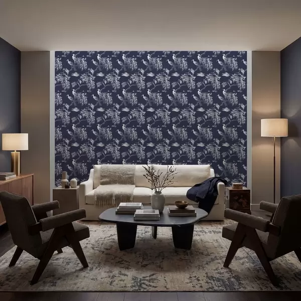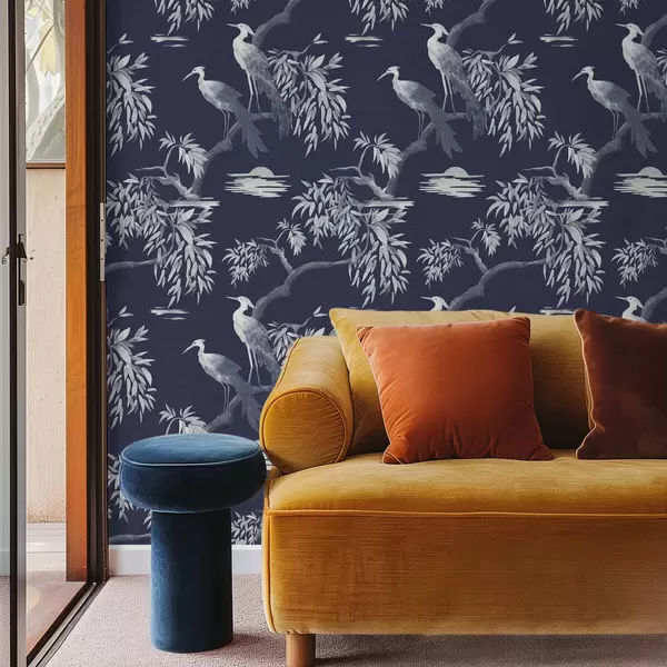 Tapet Fugler på gren på mørkeblå bakgrunn Nr. a01116v1