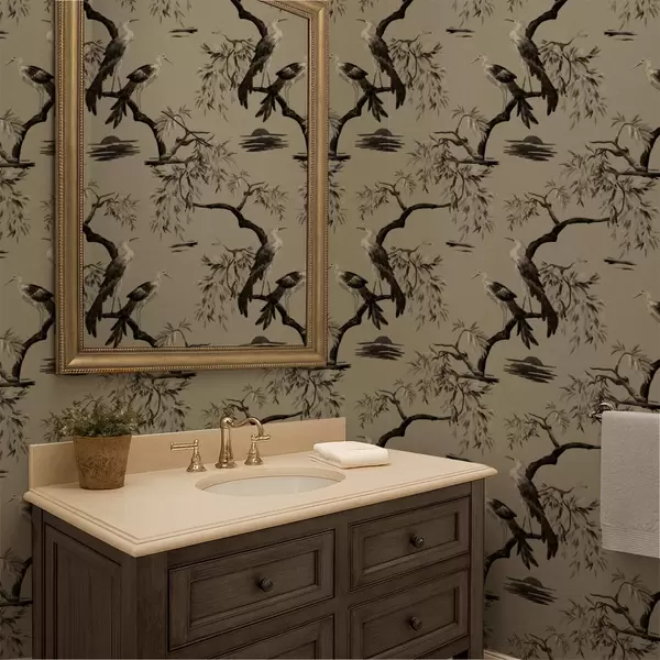 Tapet Fugler på gren i monokrome toner Nr. a01116v2