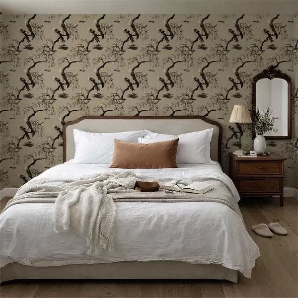 Tapet Fugler på gren i monokrome toner Nr. a01116v2