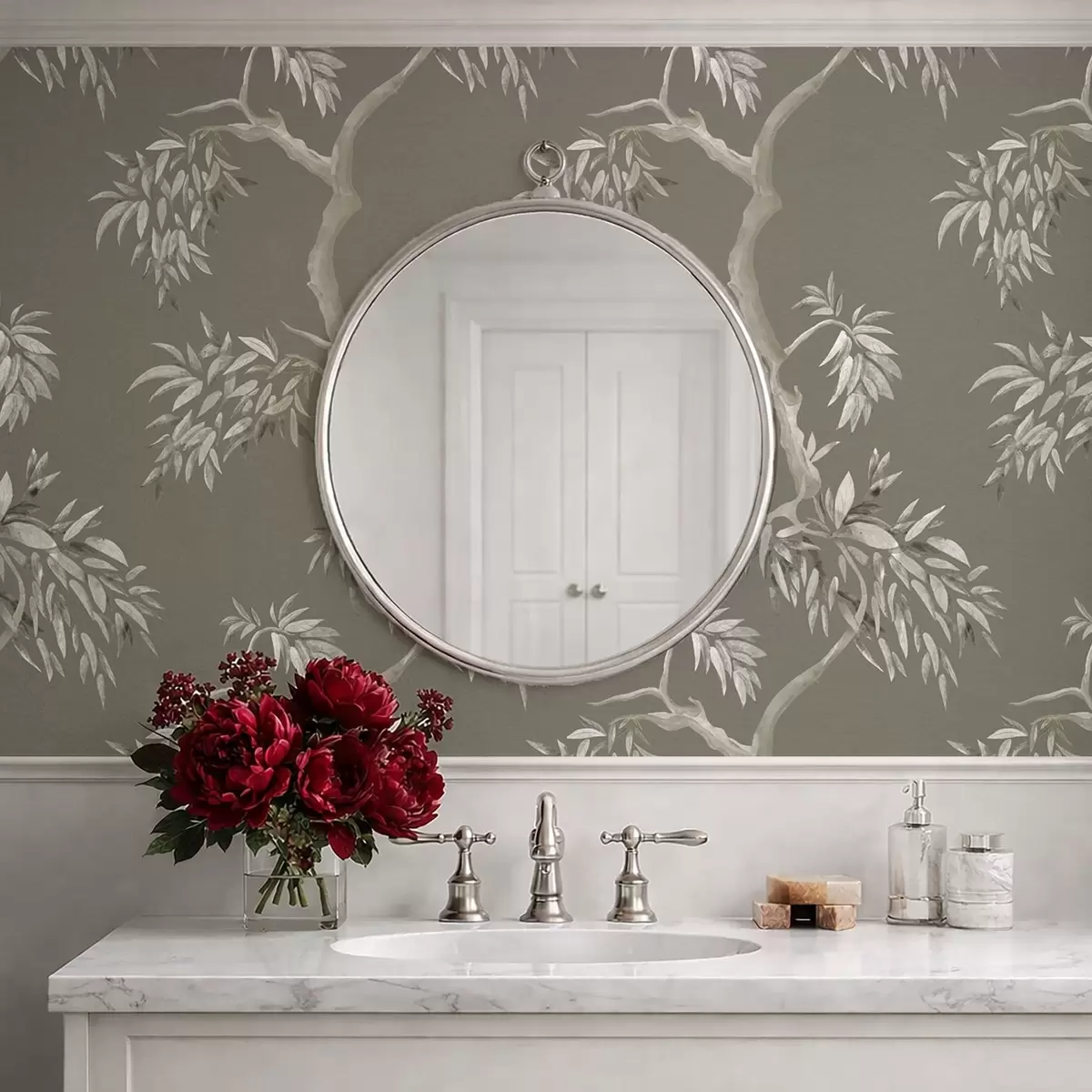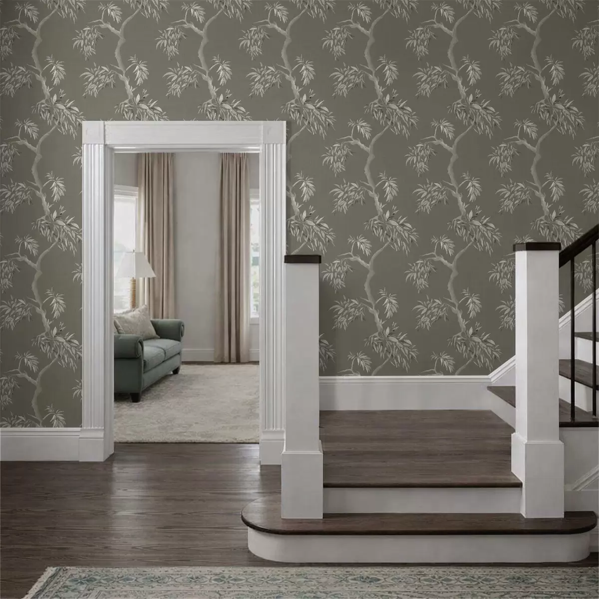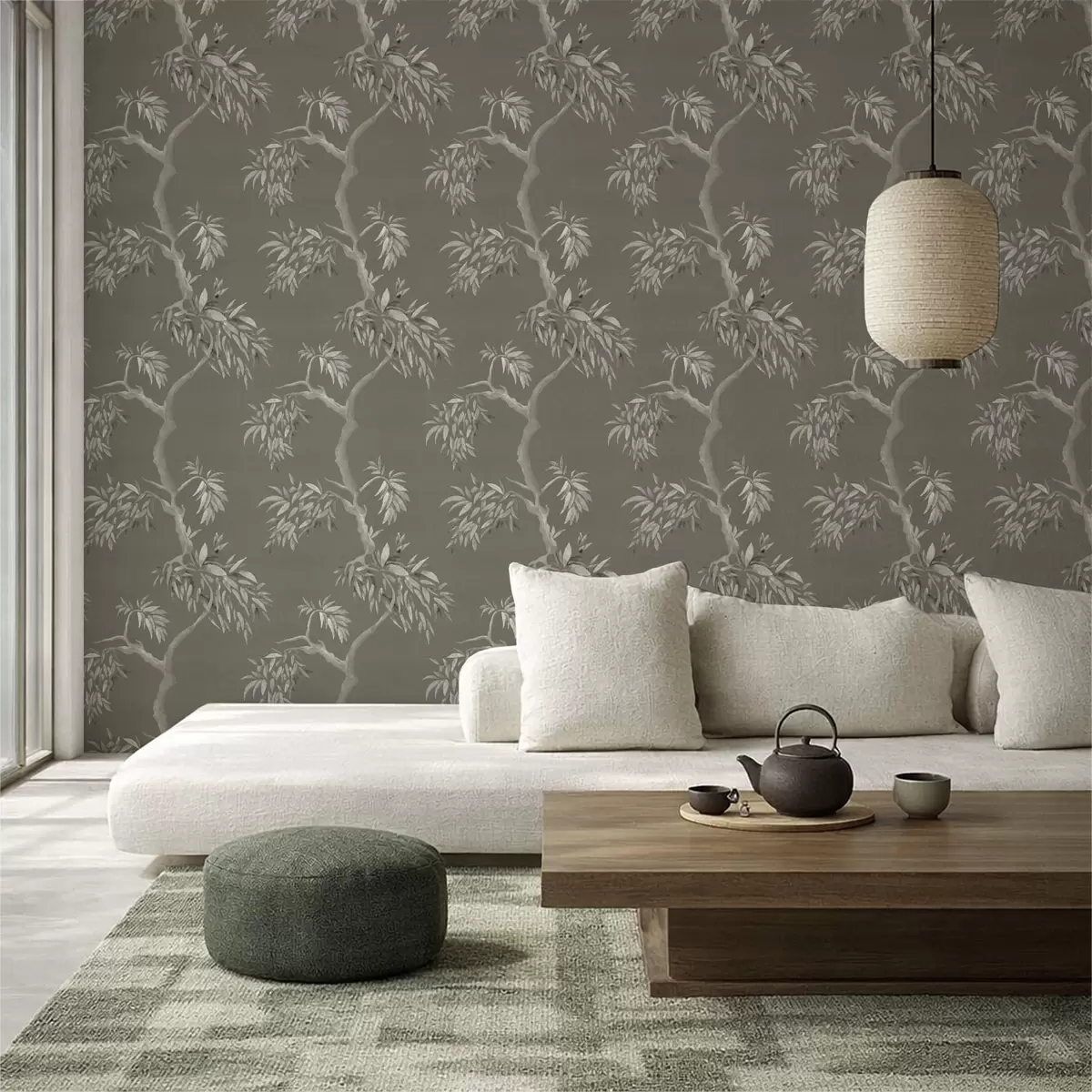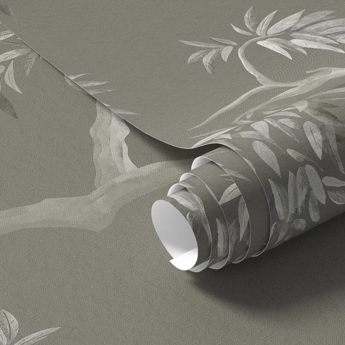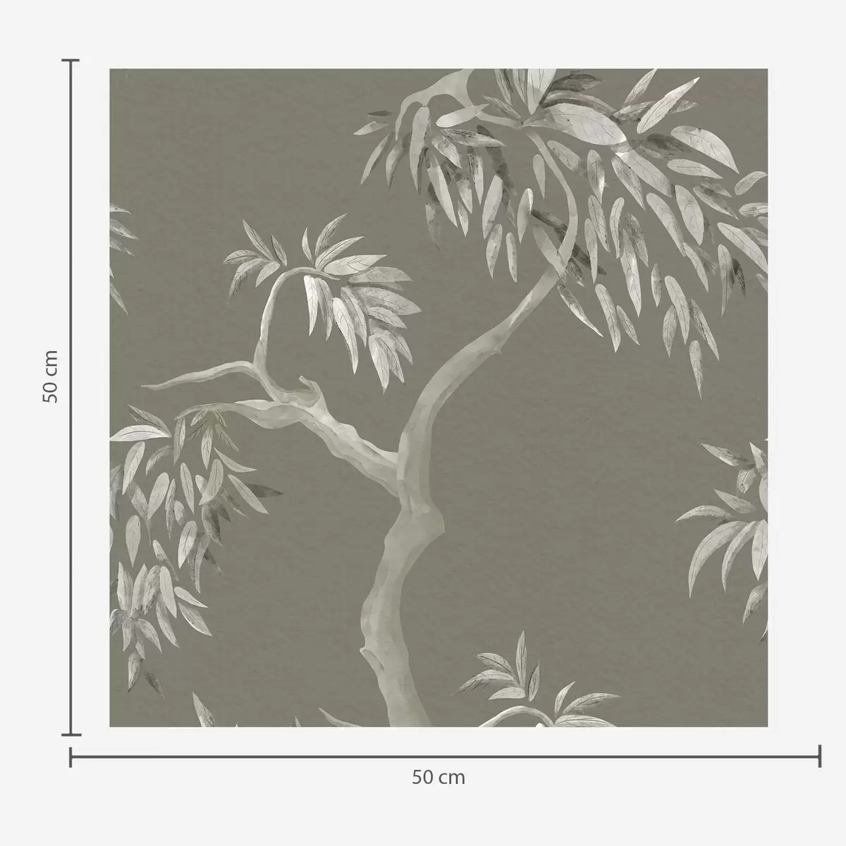Tapet Lett gren med blader på olivenbakgrunn Nr. a01117v1