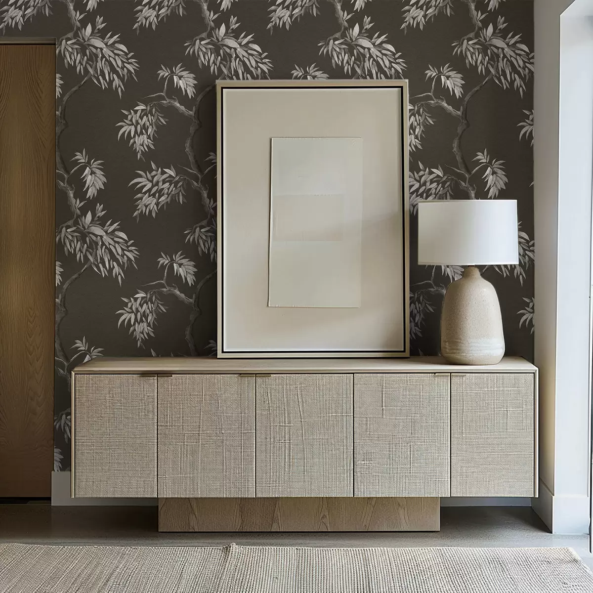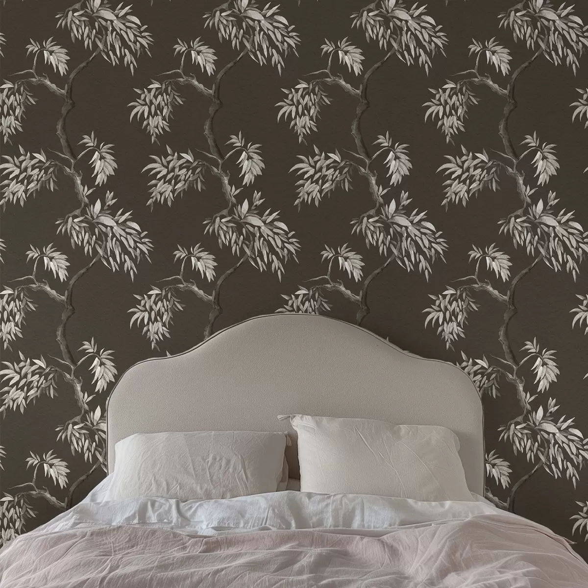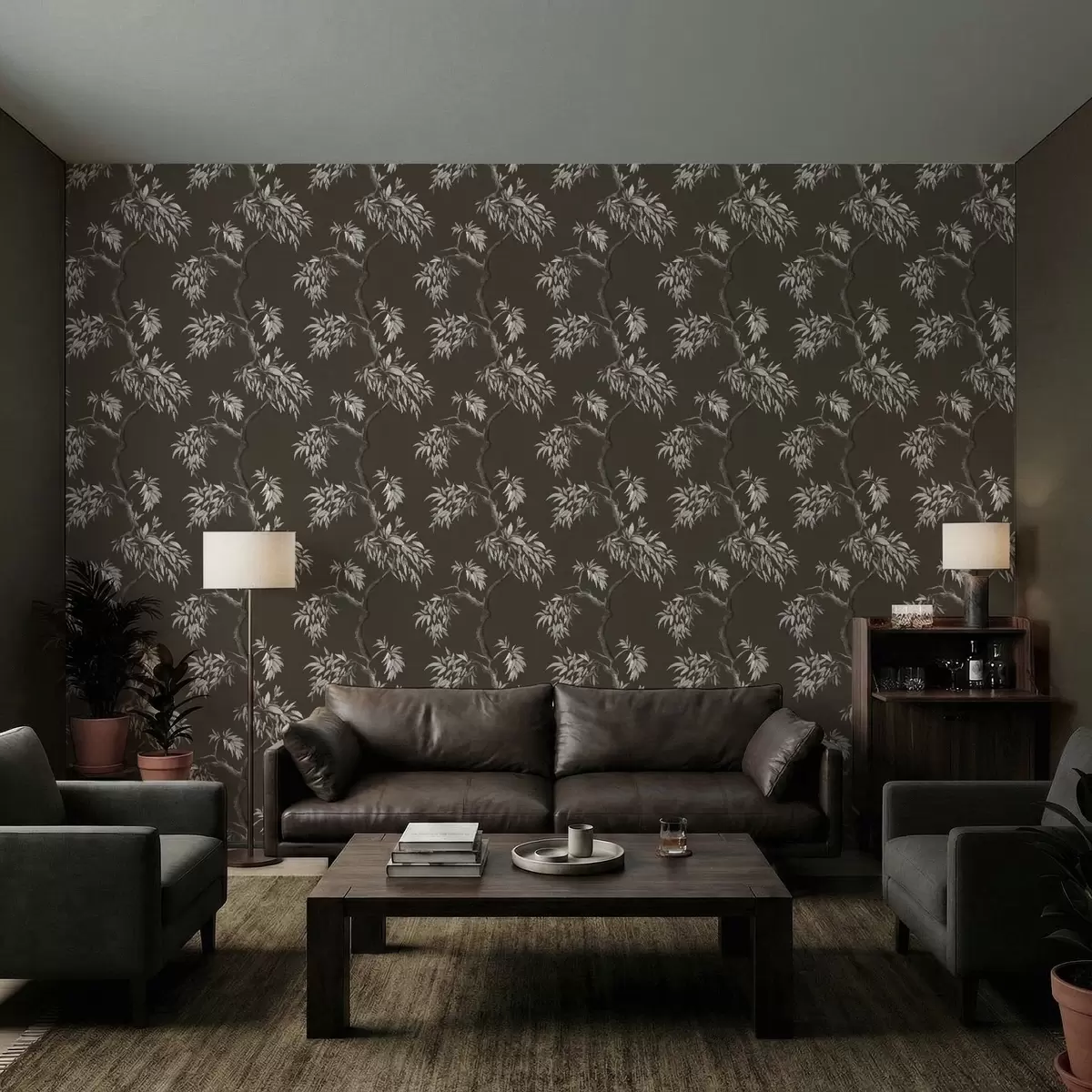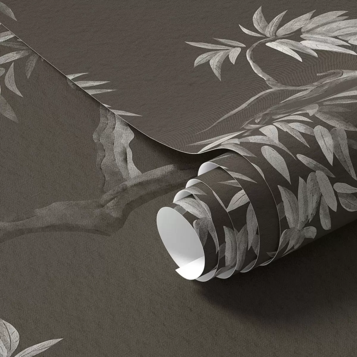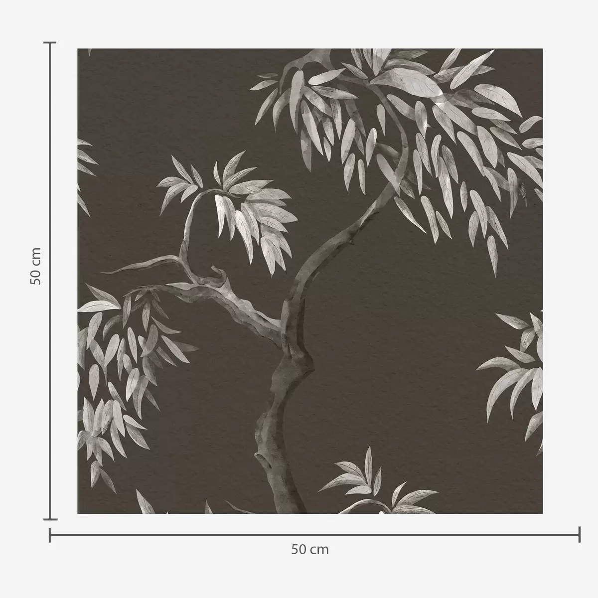 Tapet Monokrom gren med blader på mørk bakgrunn Nr. a01117v2