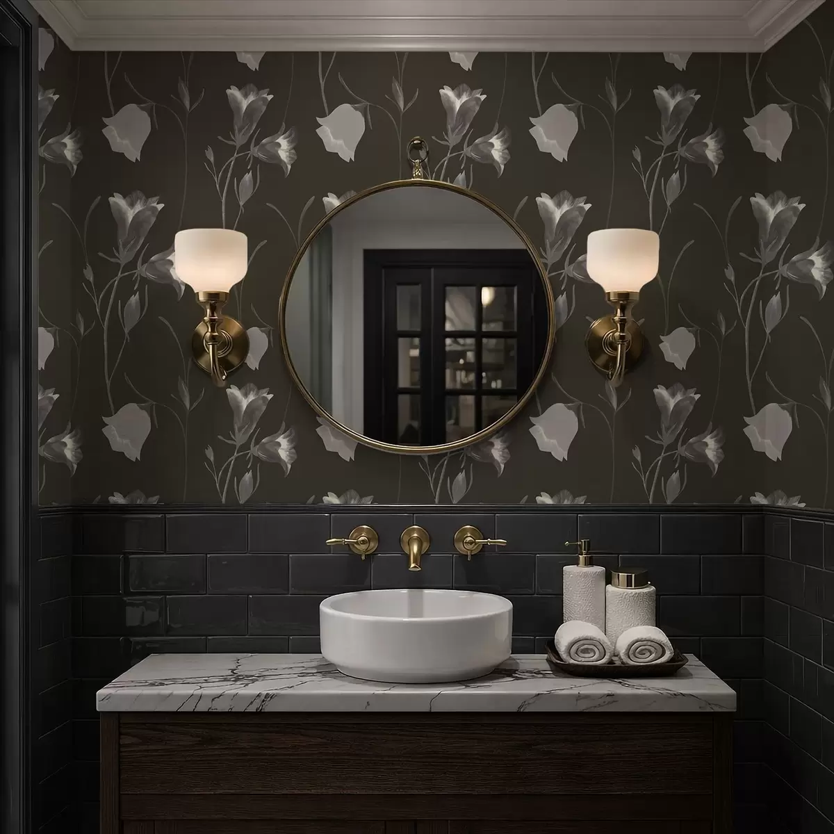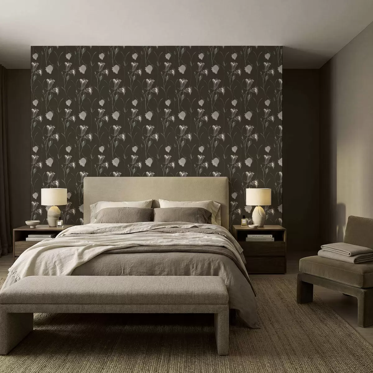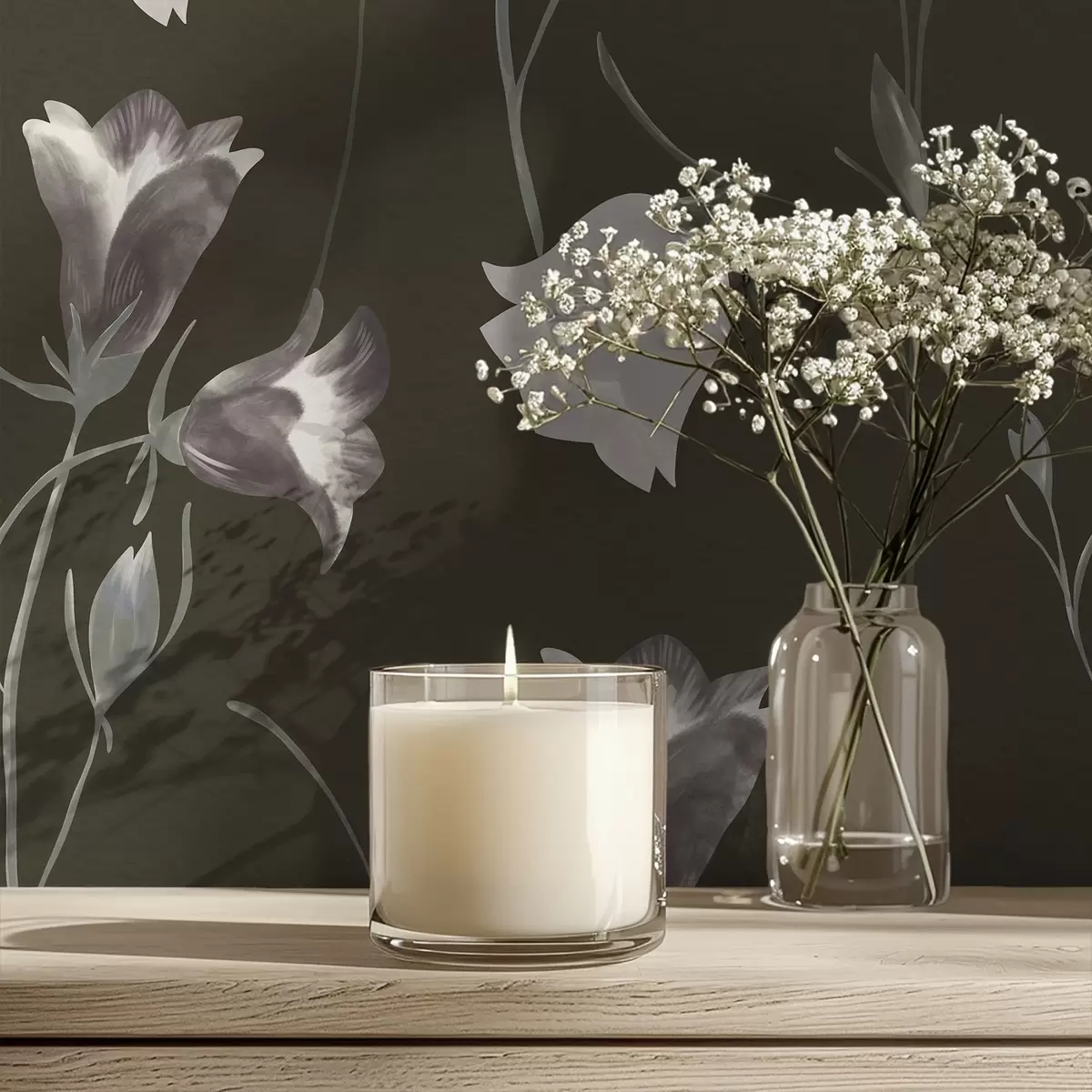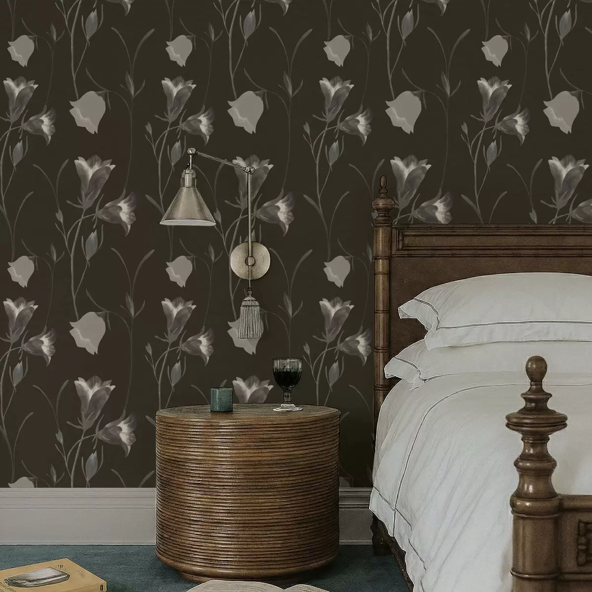 Tapet Grå klokkeblomster på mørk bakgrunn Nr. a01119v1