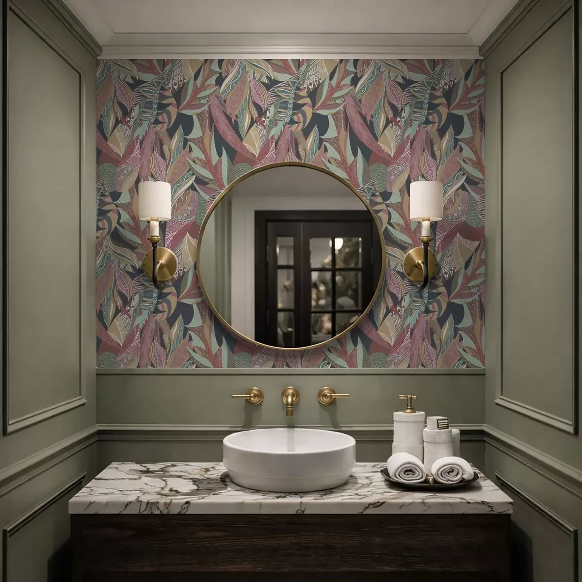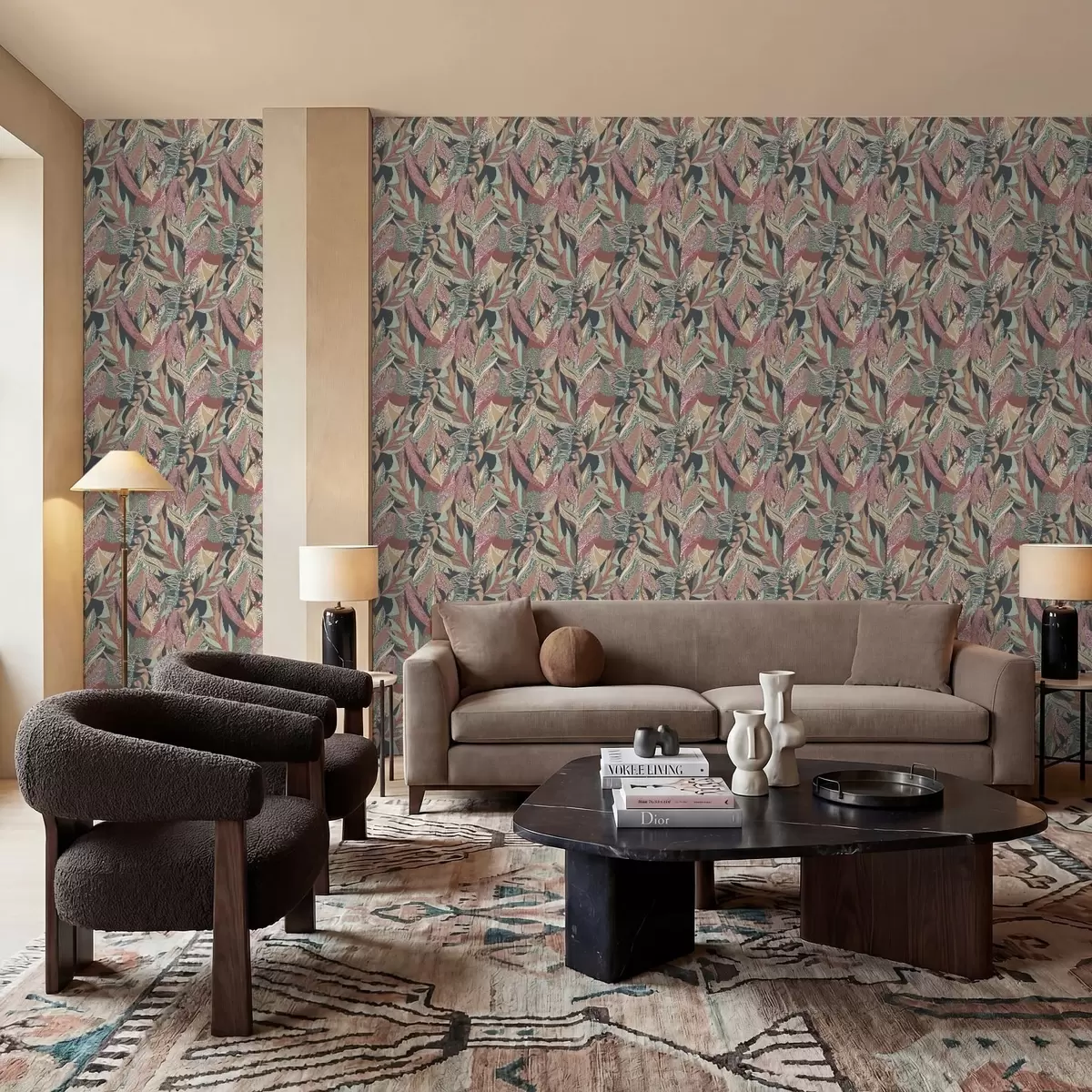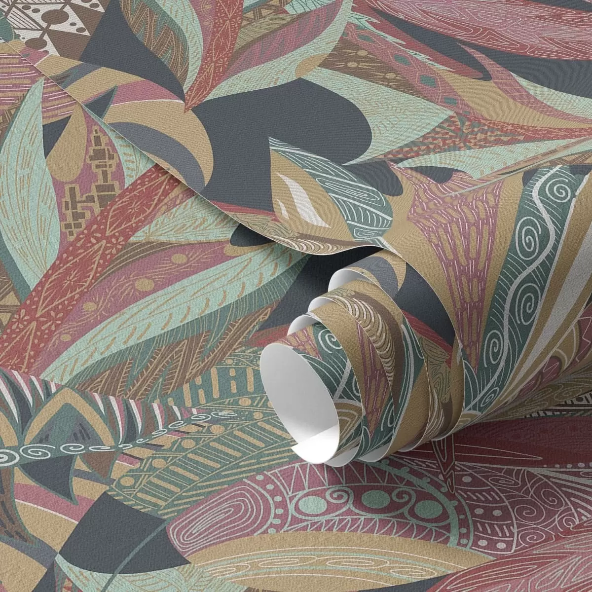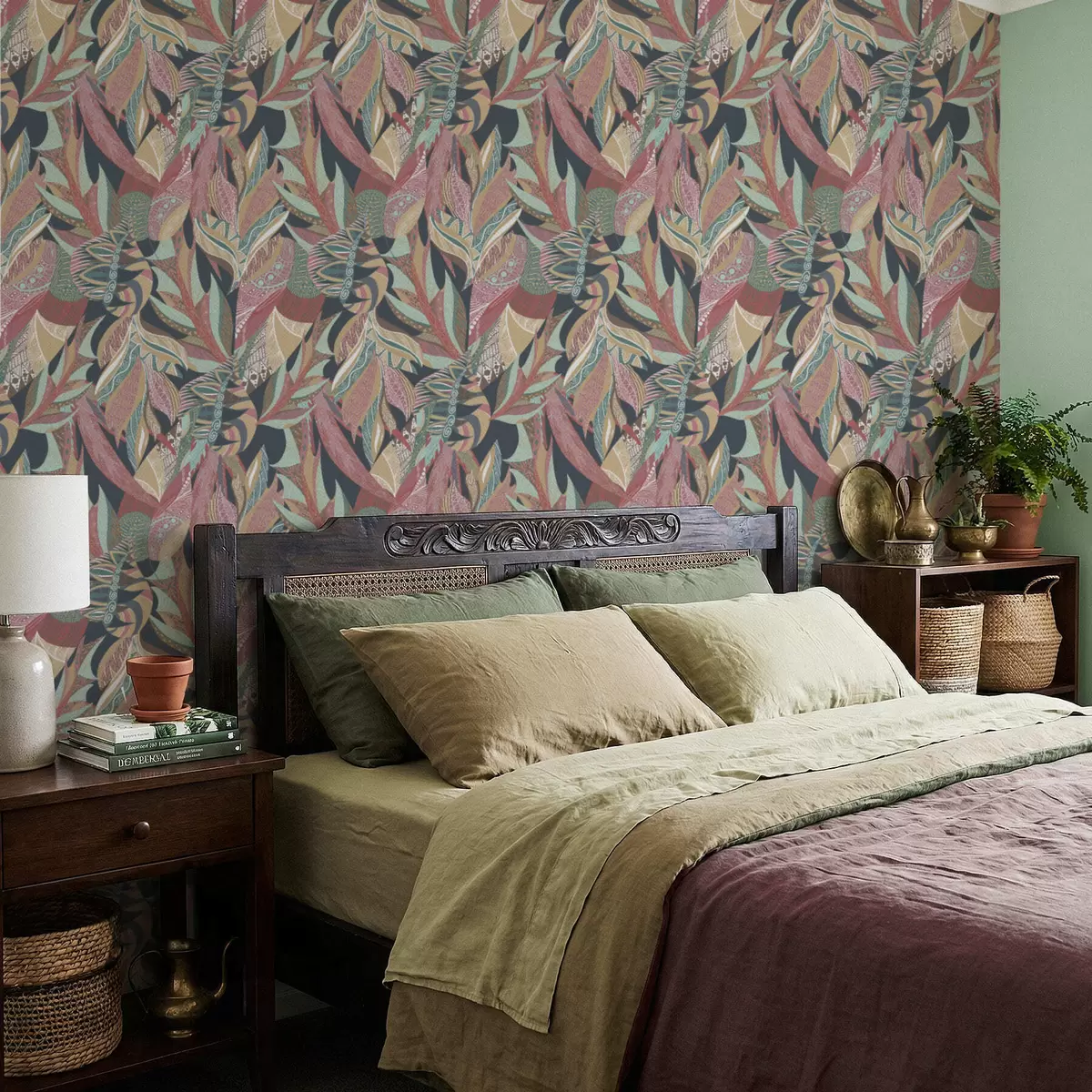 Tapet Fargerike mønstrede blader på mørk bakgrunn Nr. a01120