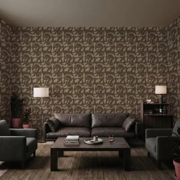 Tapet Skogsmønster med dyr på brun bakgrunn Nr. a01121