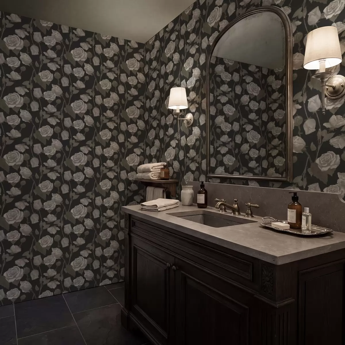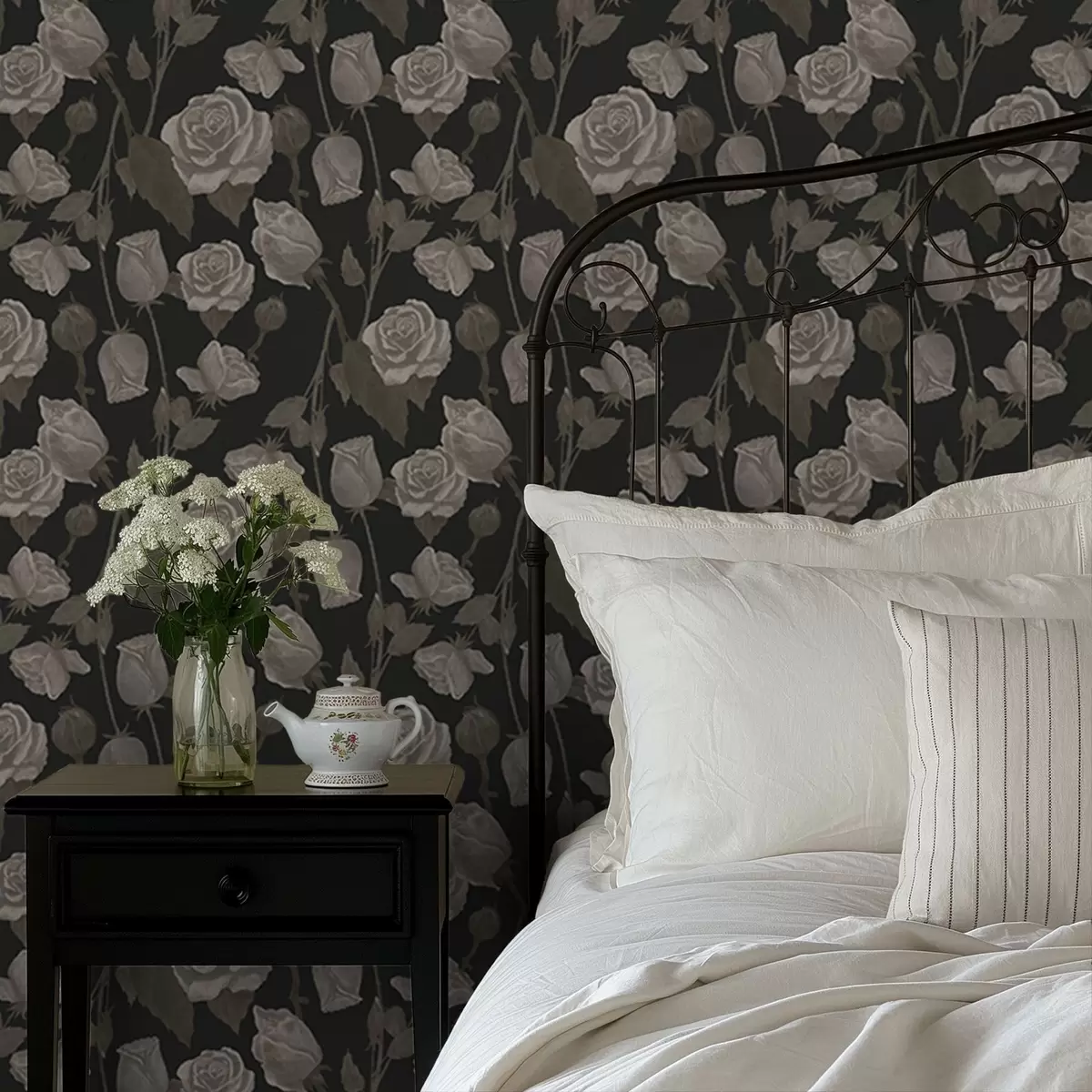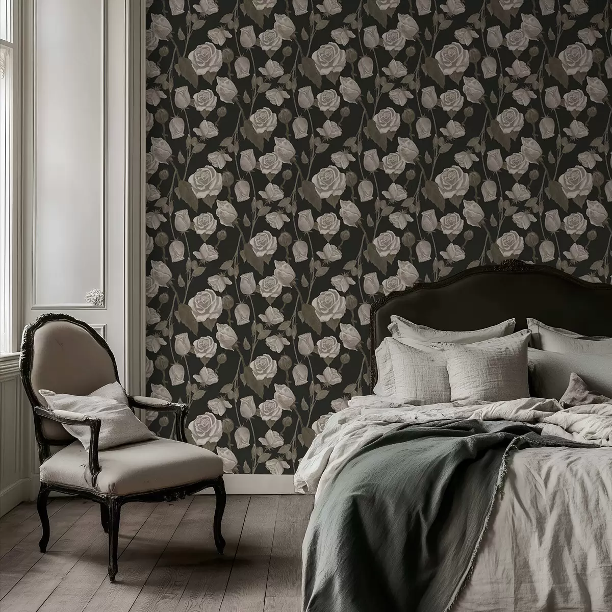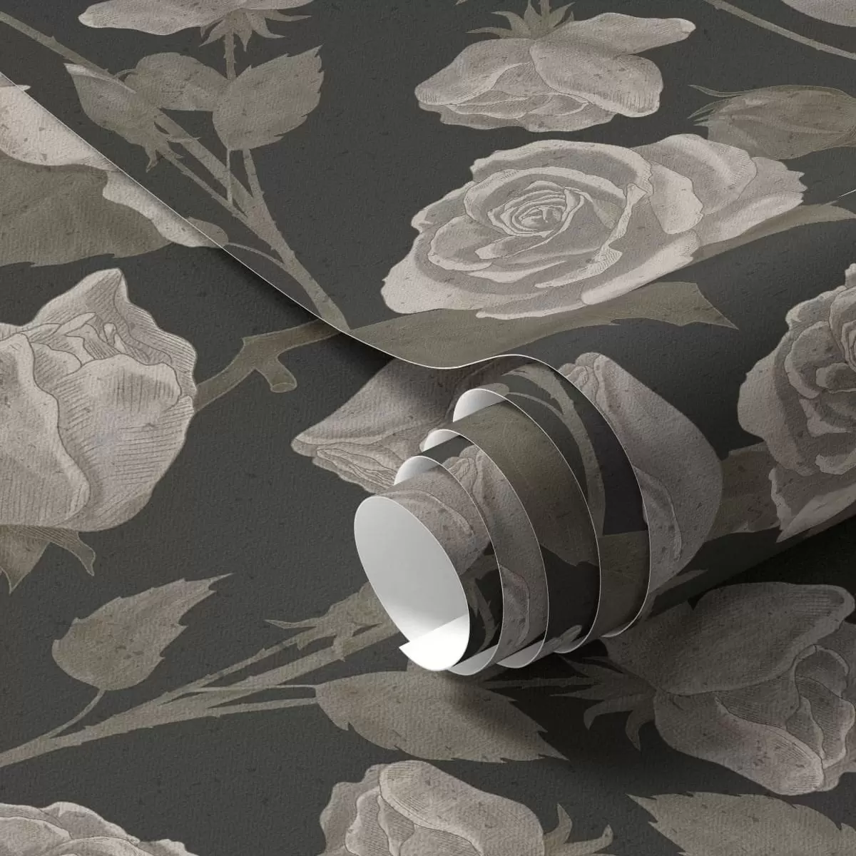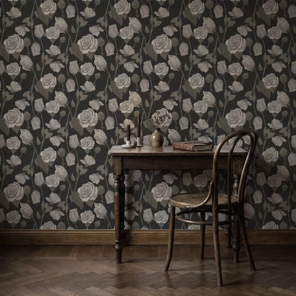 Tapet Blomstermønster med roser på mørk bakgrunn Nr. a01123