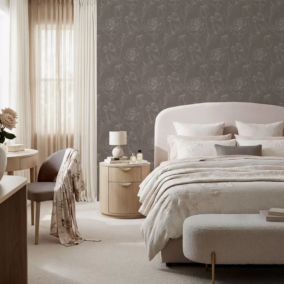 Tapet Mørk rosa mønster på brun bakgrunn Nr. a01124v1