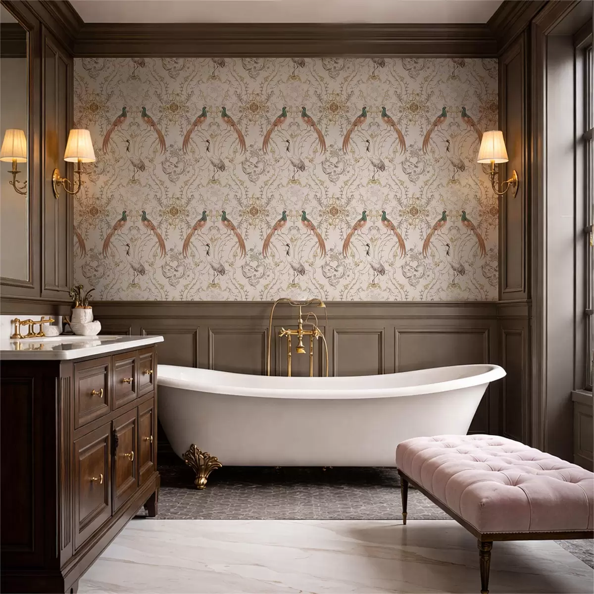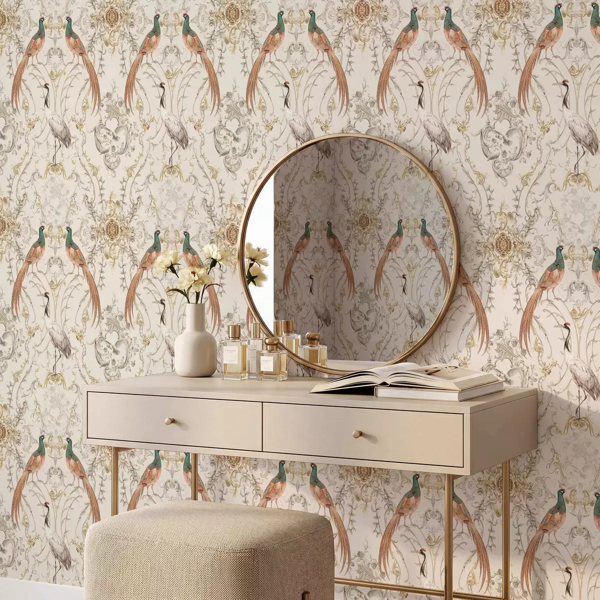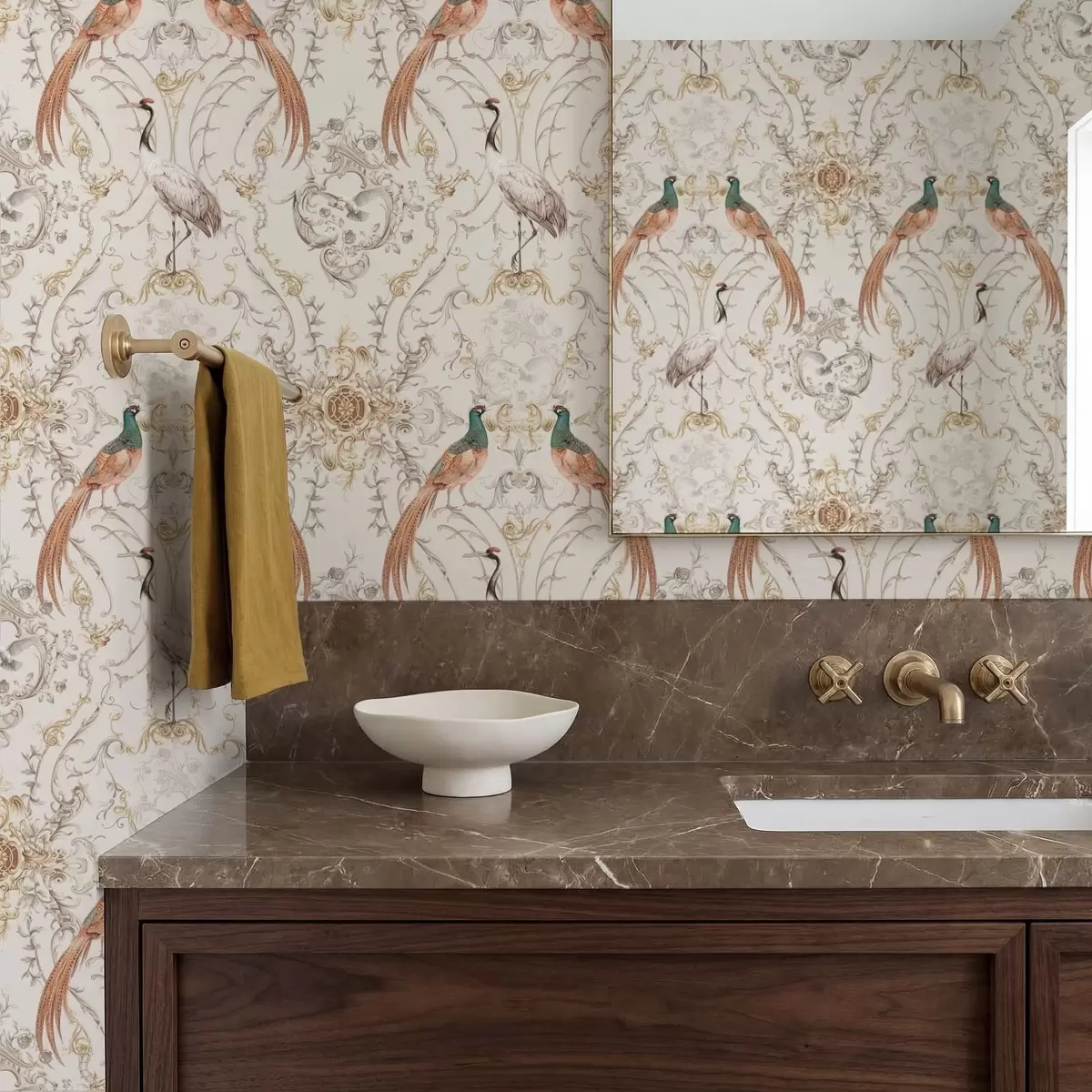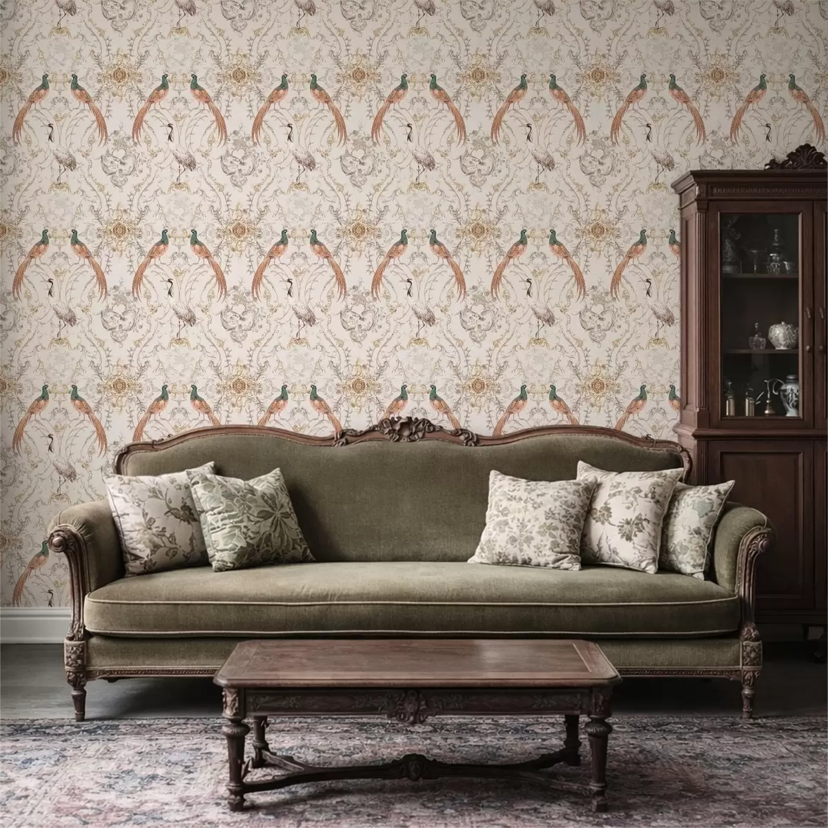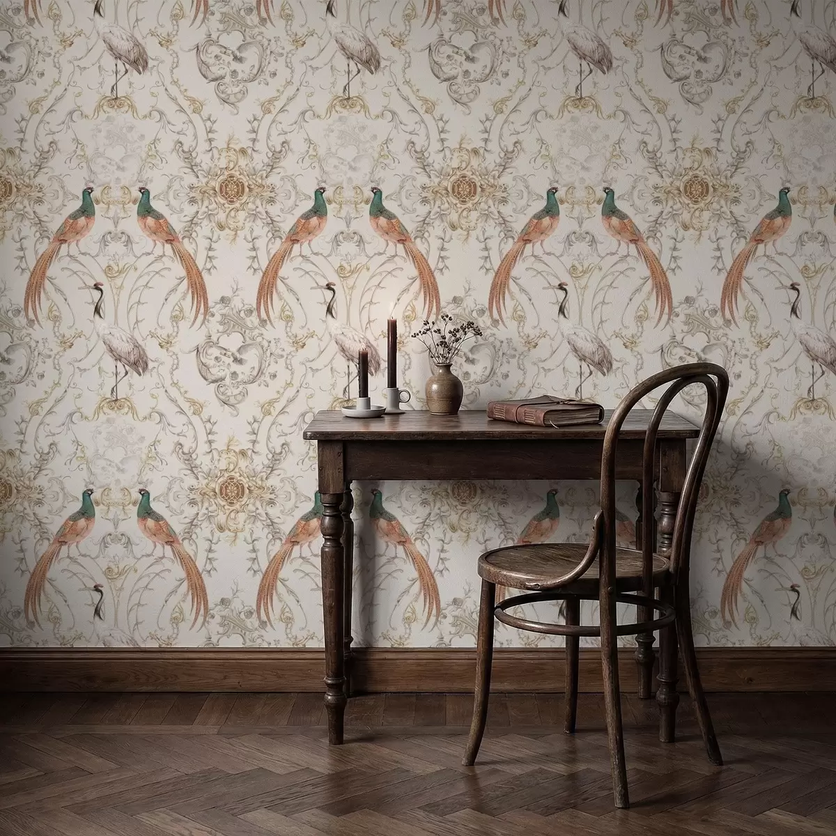 Tapet Dekorativt mønster med fugler og motiver Nr. a01156